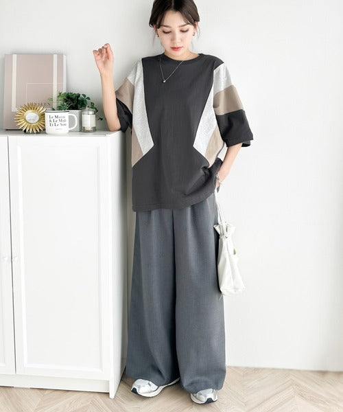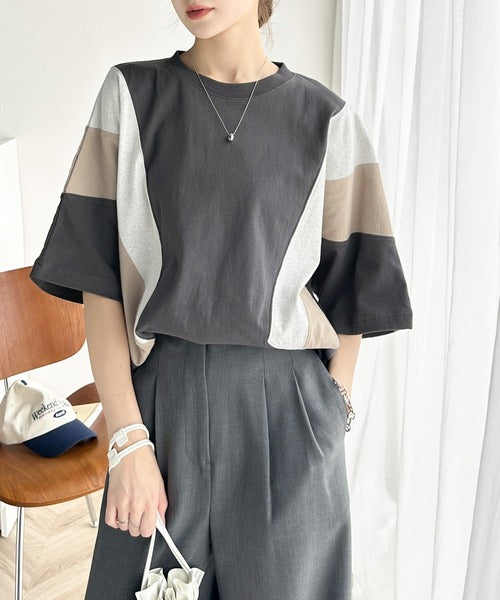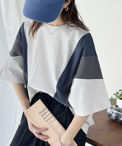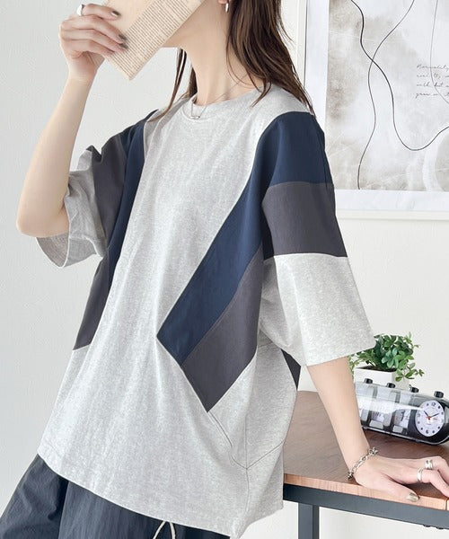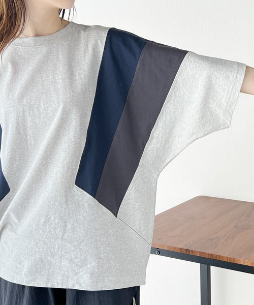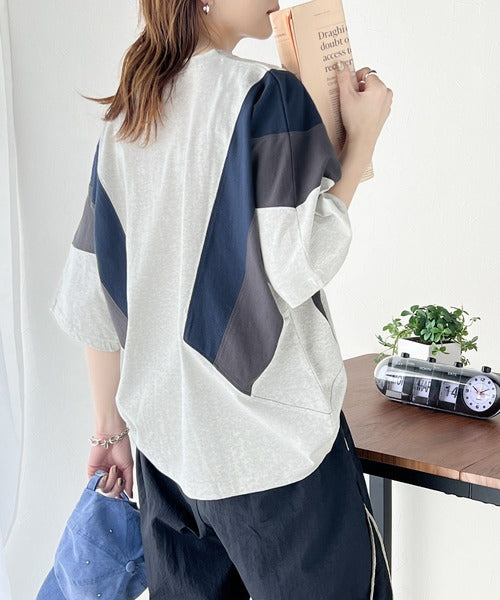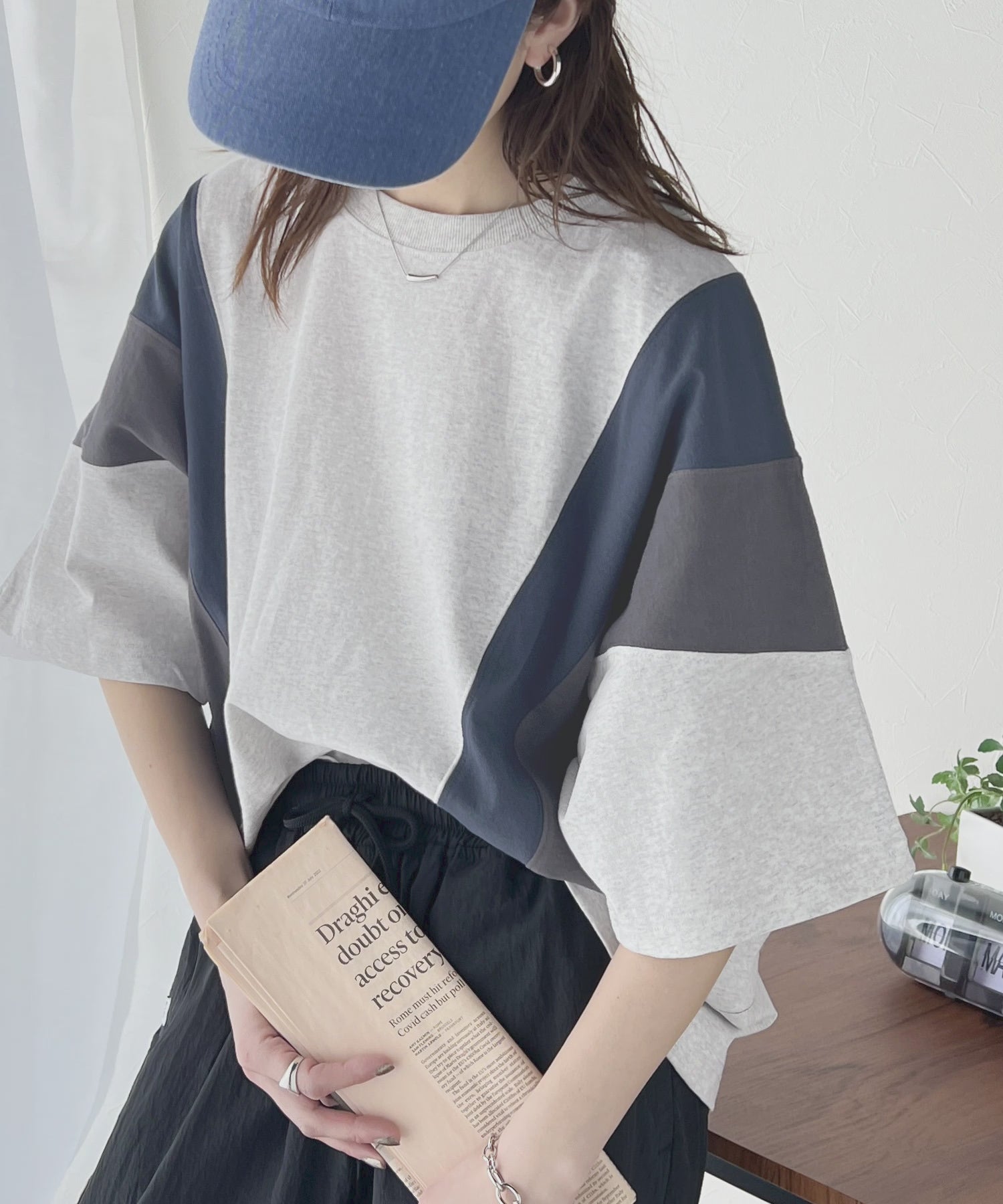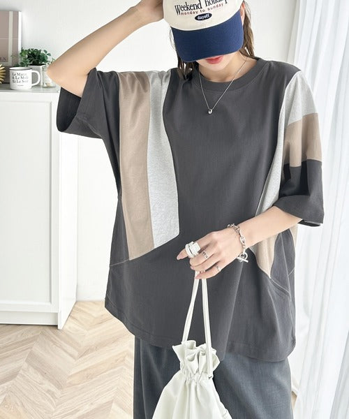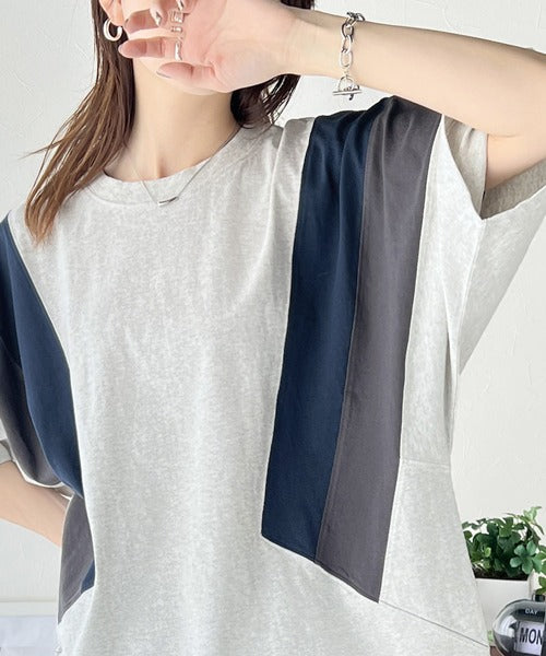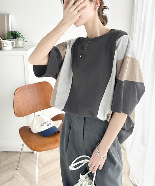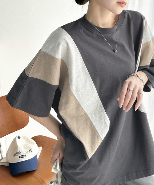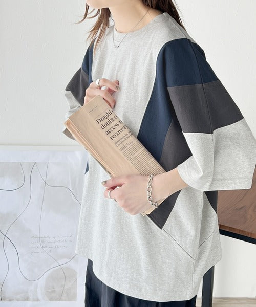 《JaVaジャバ コラボ》理想のゆったり感。綿100%マルチカラー配色切替Tシャツ jv1050178