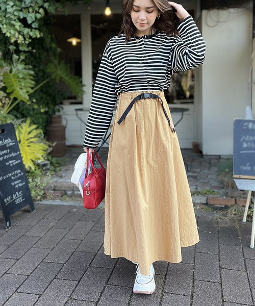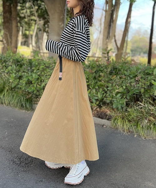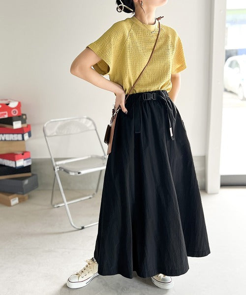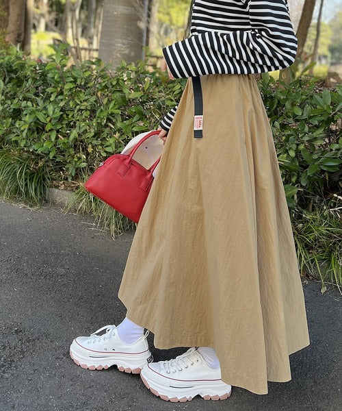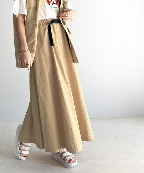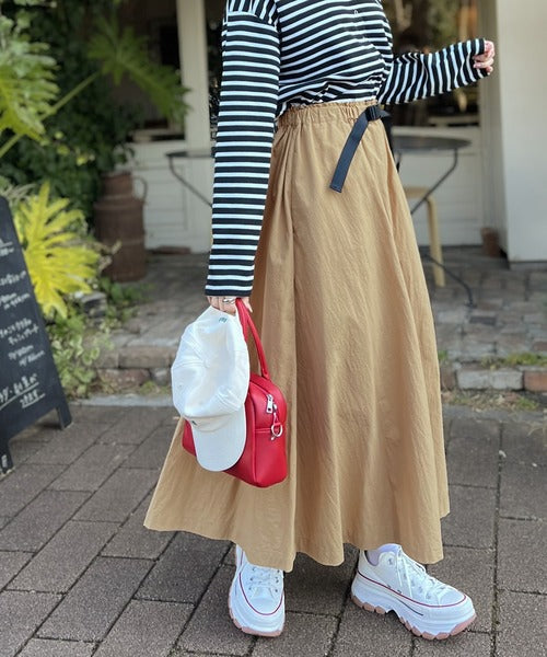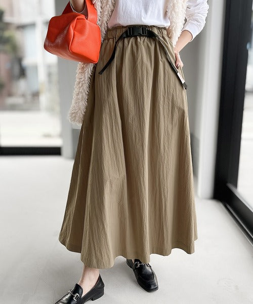 機能性のあるウェービングベルトがポイントのデザインスカート。