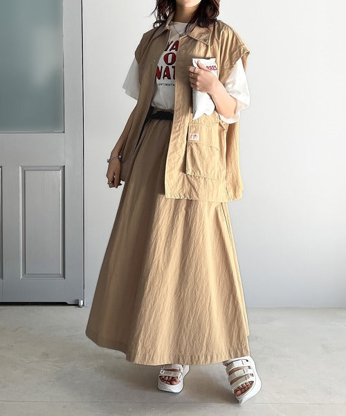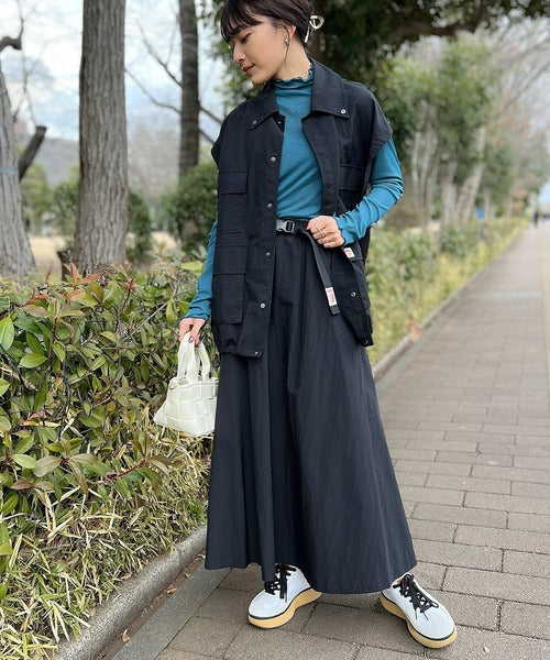 アウトドアな印象ながらも、ウエストにはたっぷりギャザーを寄せ