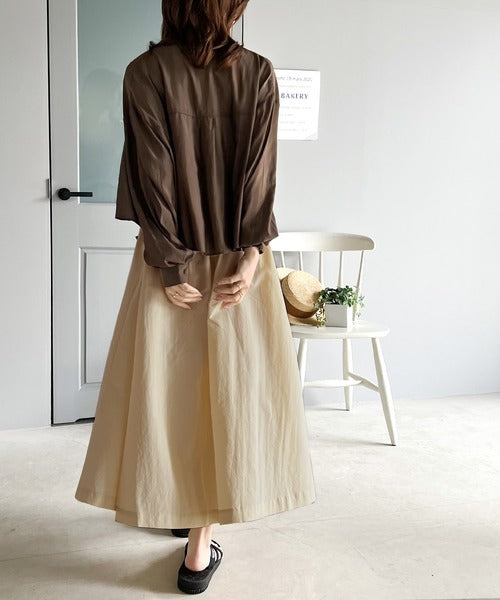 ボリューム感のあるフレアシルエットで女性らしい1枚。