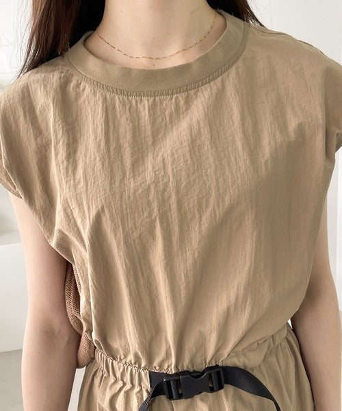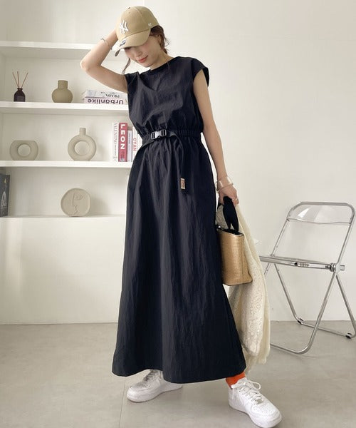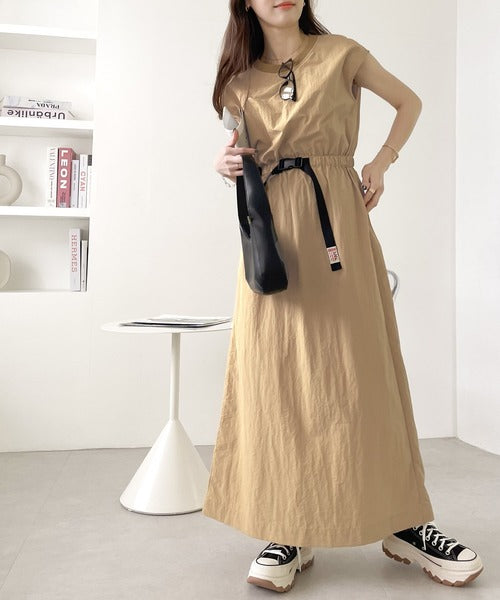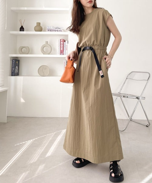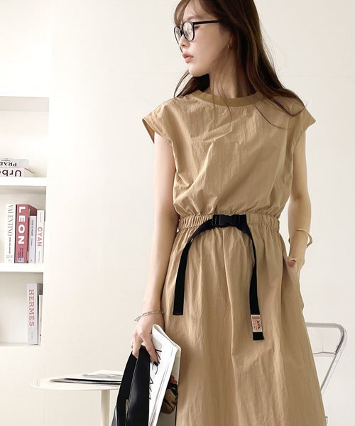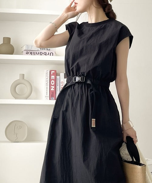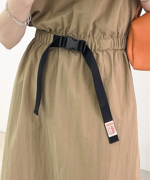 《JaVaジャバ コラボ》お洒落ラフにキマる。バックルベルトフレンチスリーブワンピース jv1070027