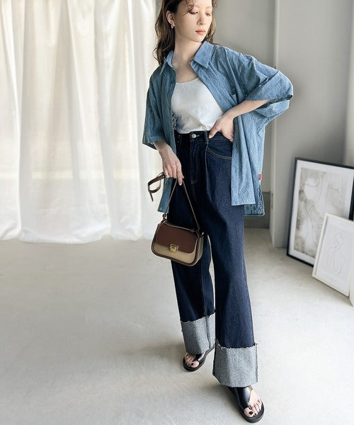 オーバーサイズなのでハイウエストのボトムを合わせるとバランスよくキマります。
