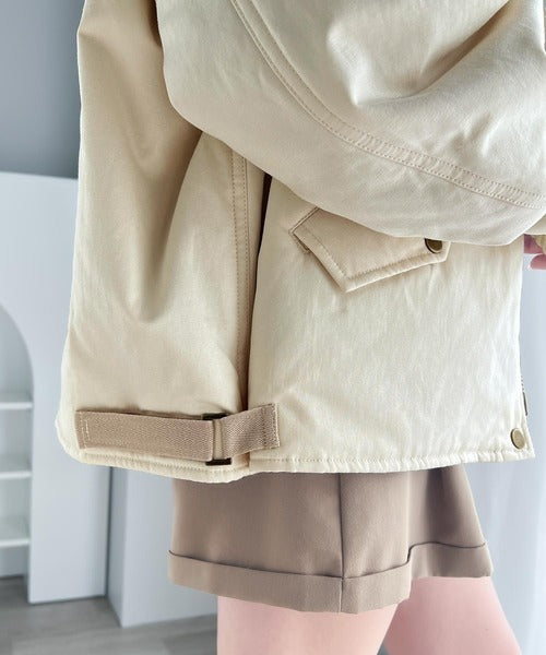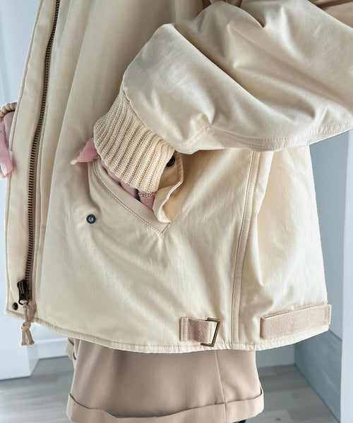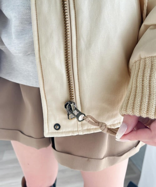 【素材】 表地:綿55%、ポリエステル45% 裏地:ポリエステル100% 中綿:ポリエステル100% リブ部分:アクリル100%