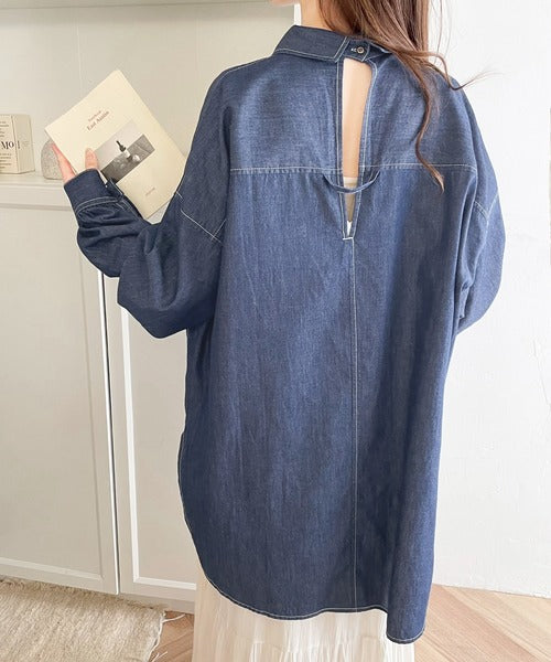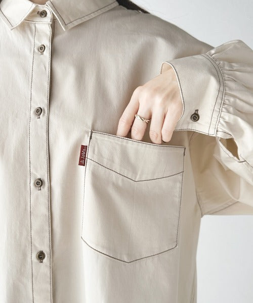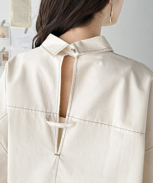 《Javaジャバコラボ》チラッと肌見せ。綿100%バックディテールBIGシャツ jv1070088