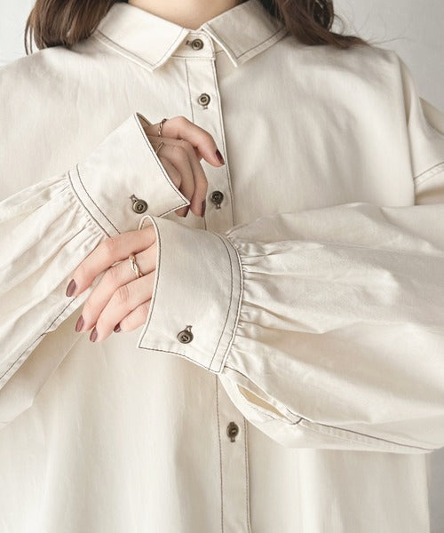 メンズライクなビッグシルエットのシャツに女性らしいボリュームスリーブや、