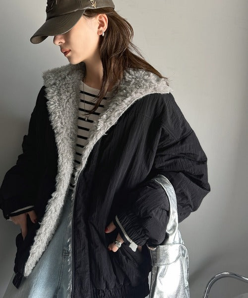 首元まで暖かく、小顔効果も叶えてくれるブルゾン。