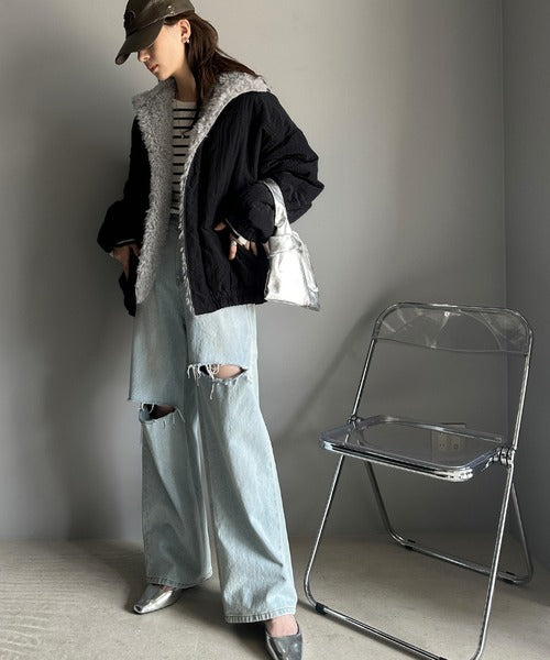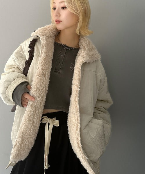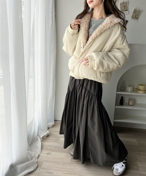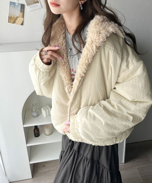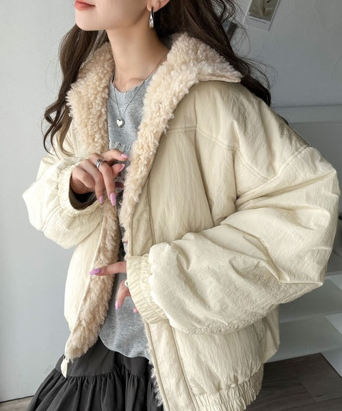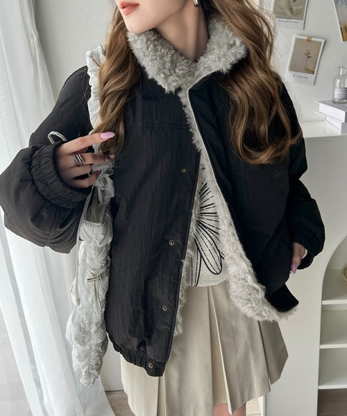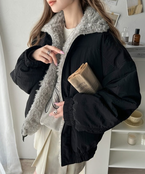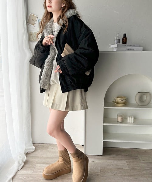 《Javaジャバコラボ》大人可愛いを叶える。中綿×ふわふわファースタンドブルゾン jv1070104