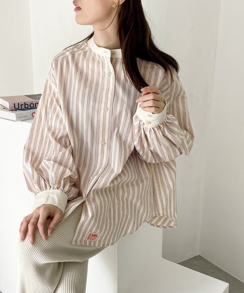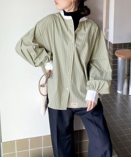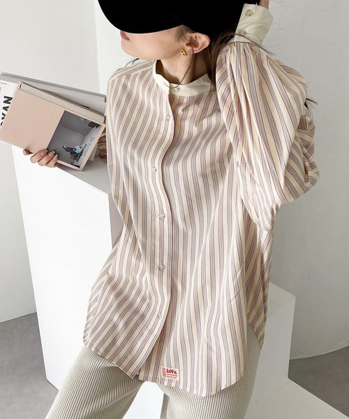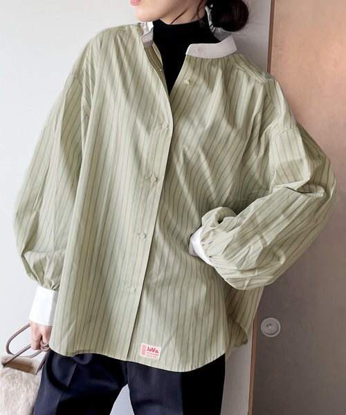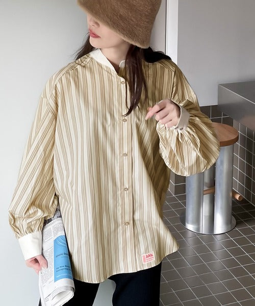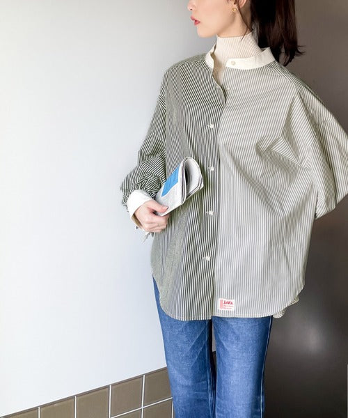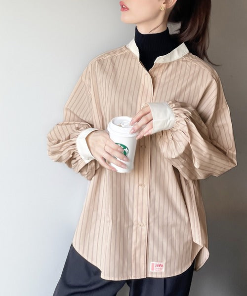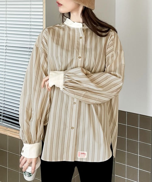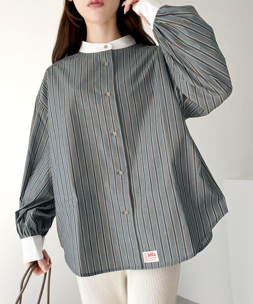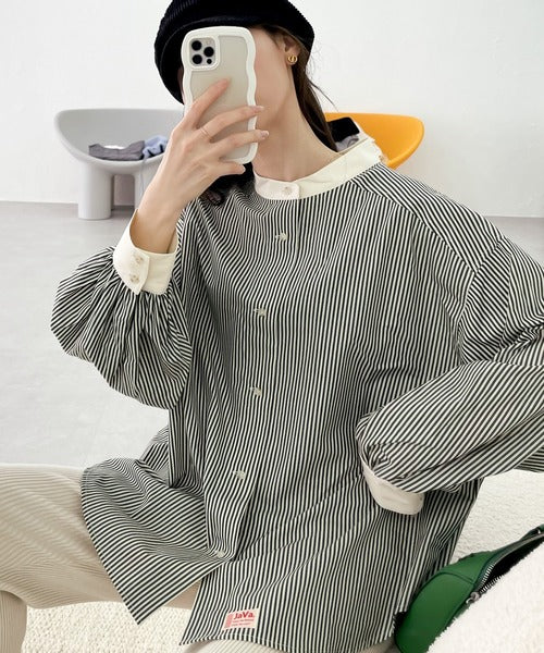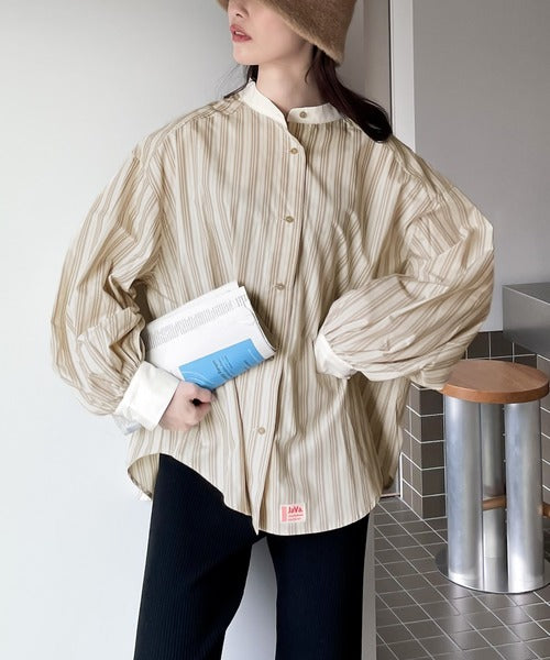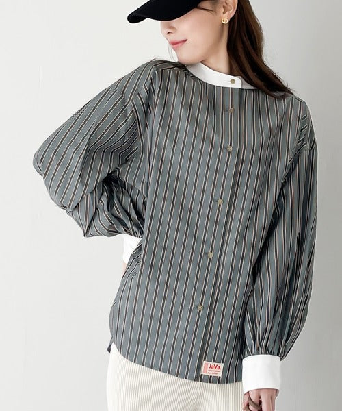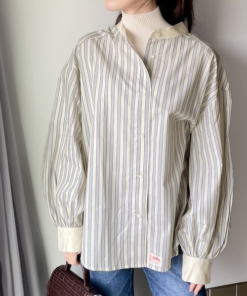 《JaVa ジャバコラボ》ストライプ最強説。レトロストライプ柄クレリックシャツ jv1110007