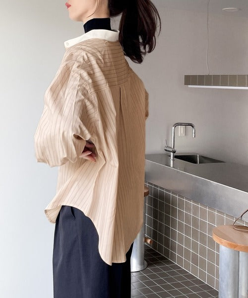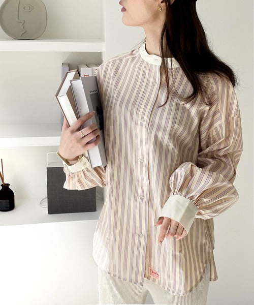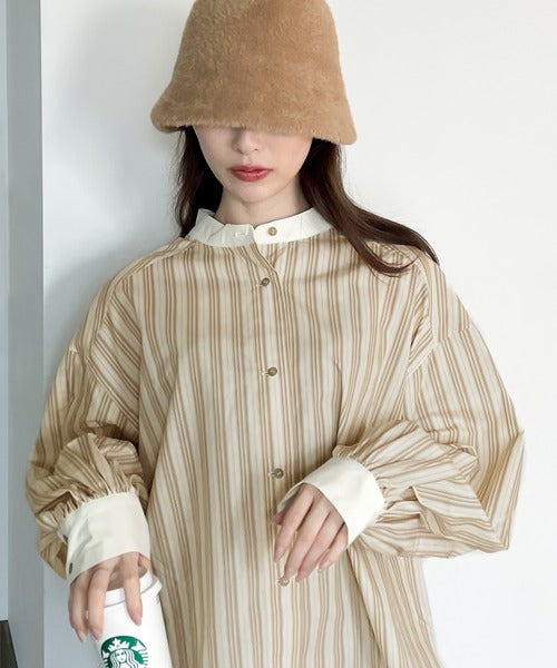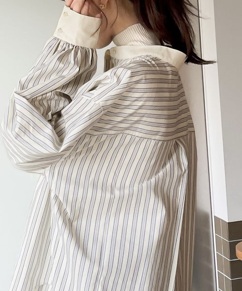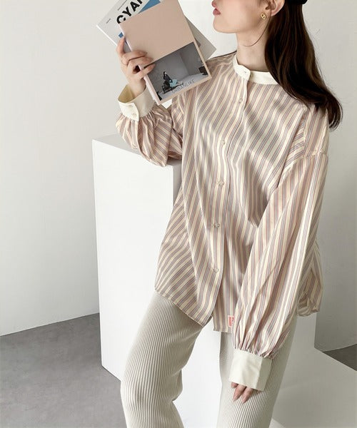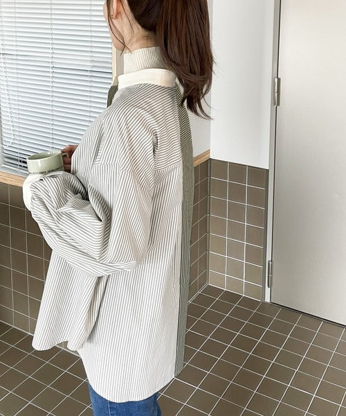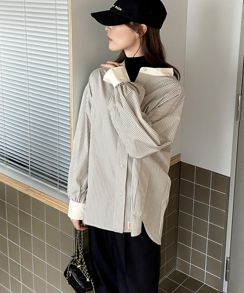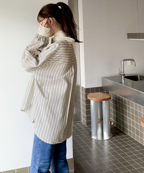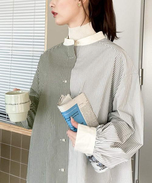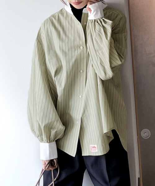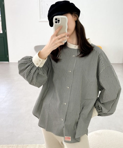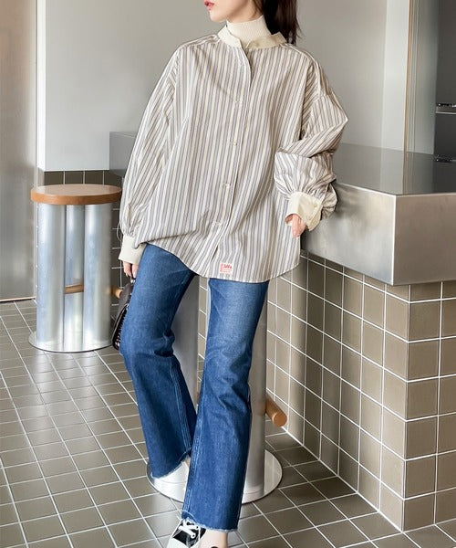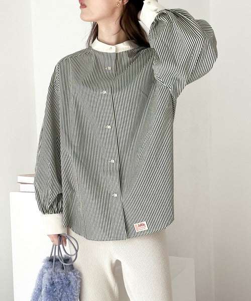 《JaVa ジャバコラボ》ストライプ最強説。レトロストライプ柄クレリックシャツ jv1110007