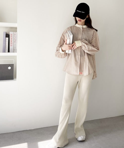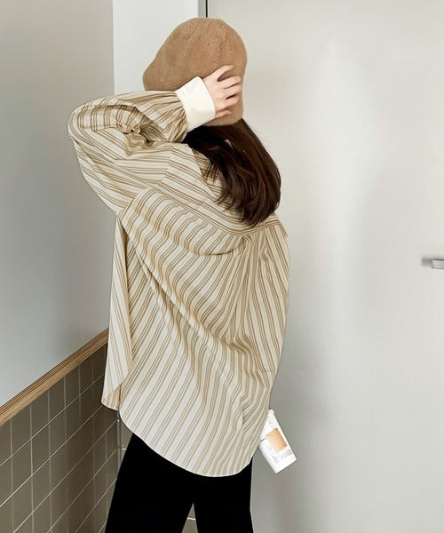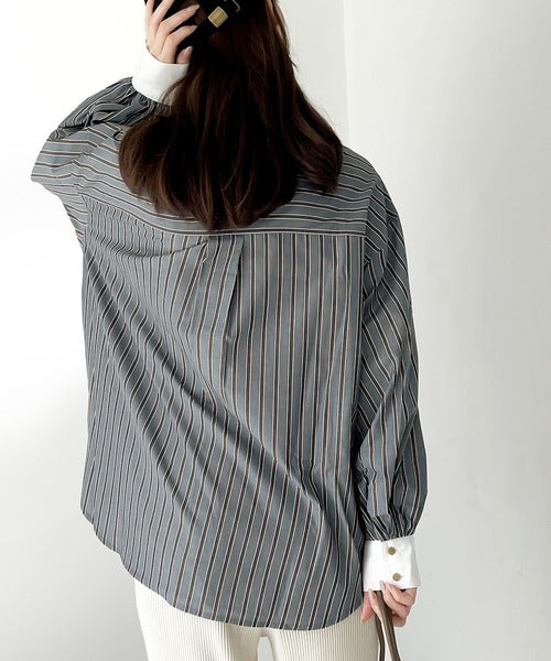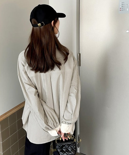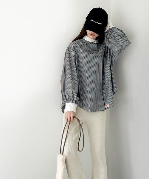 着映えするストライプ柄のトップスは、写真やリモート会議などで