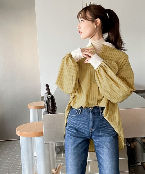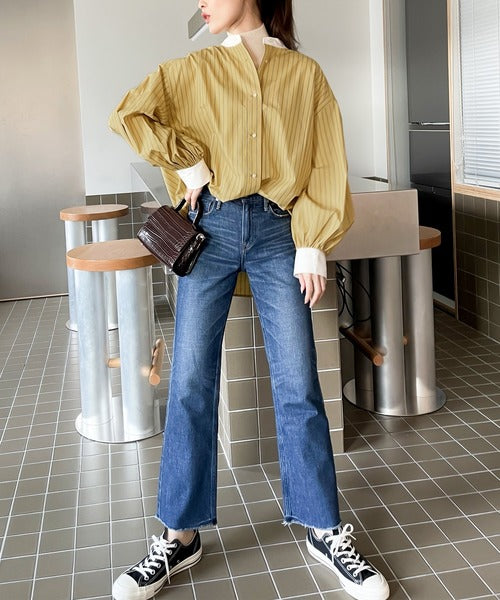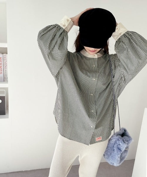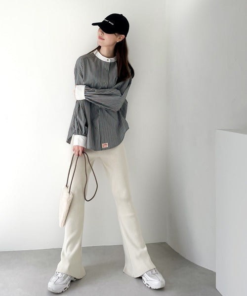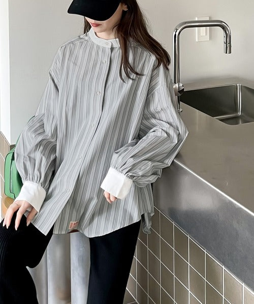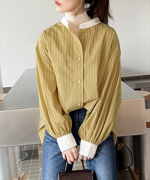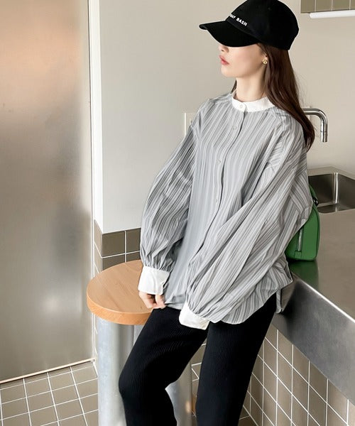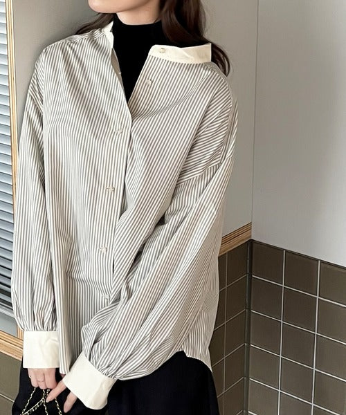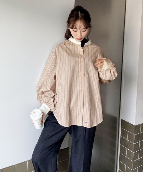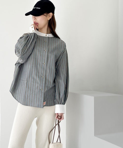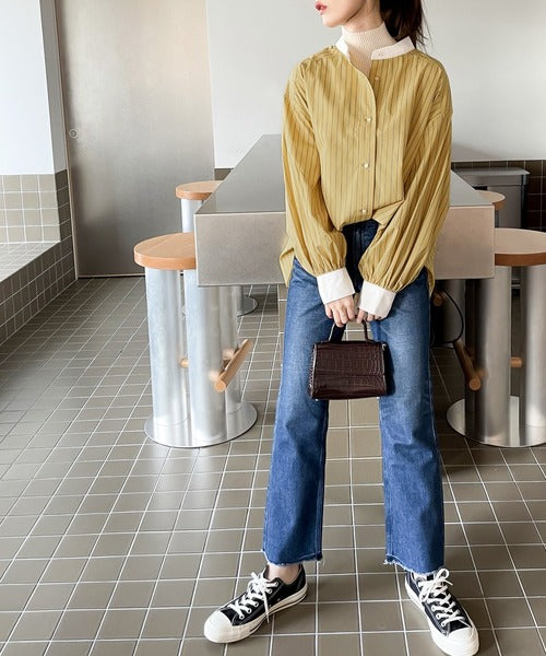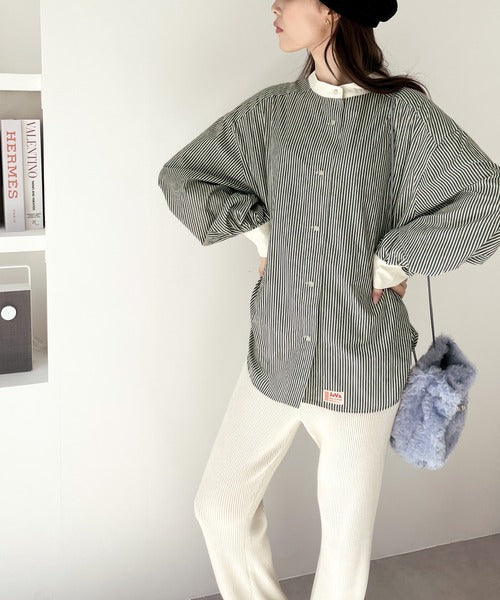 レトロちっくな雰囲気漂うクレリックシャツ。