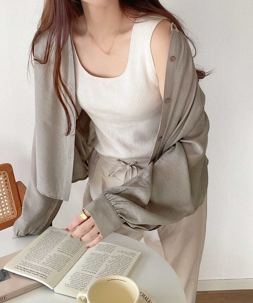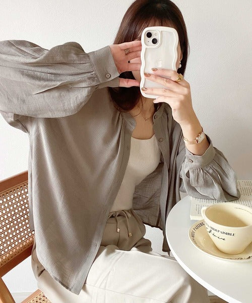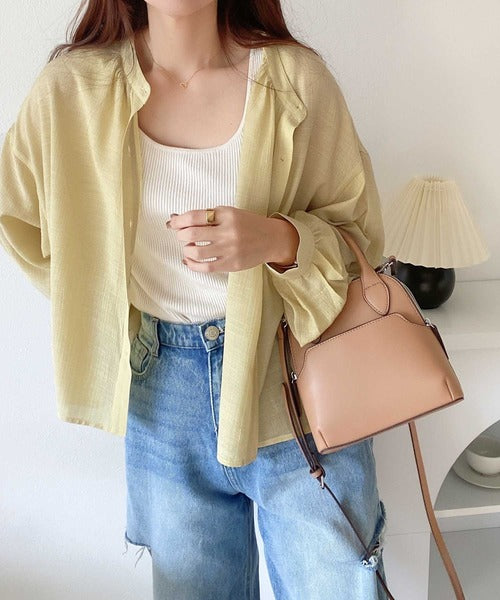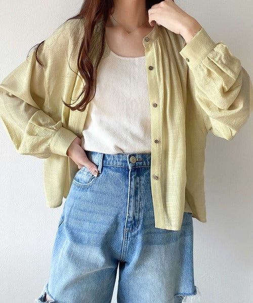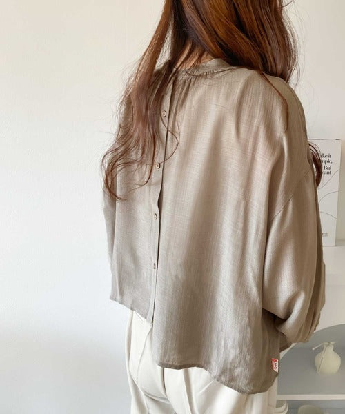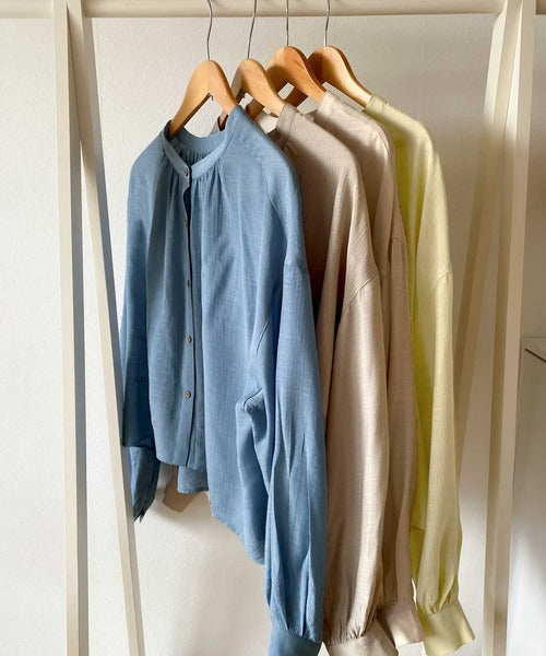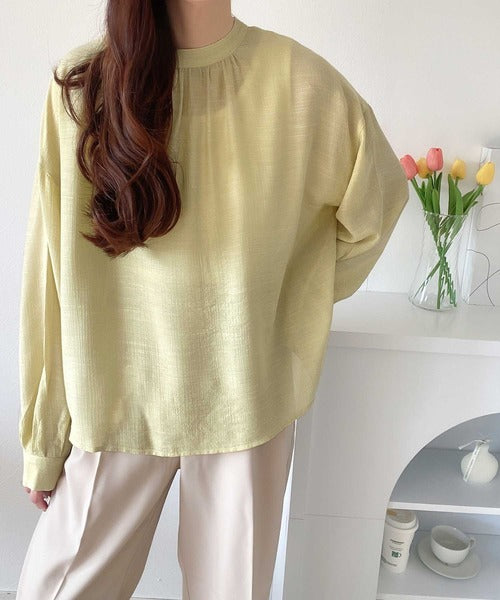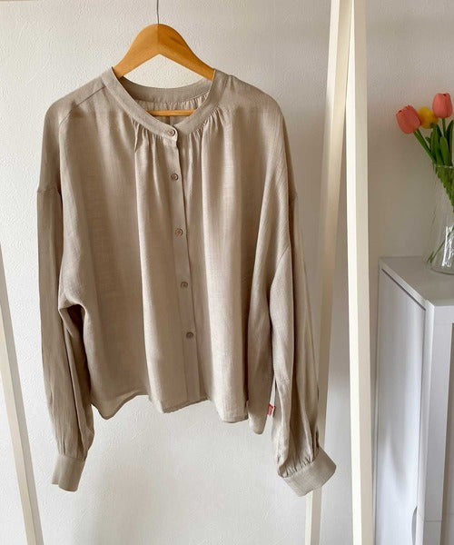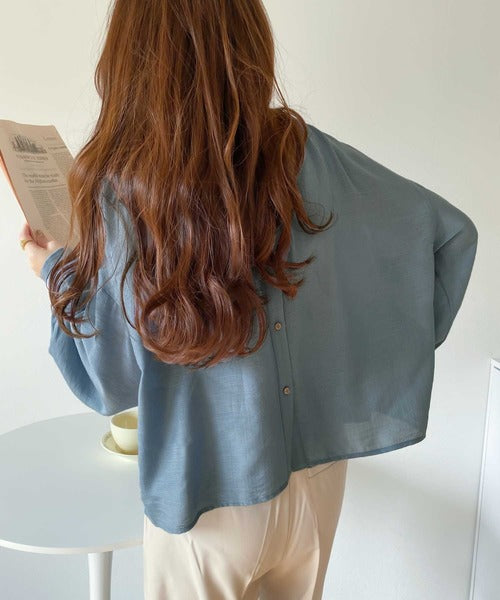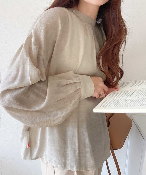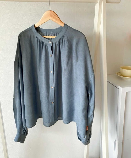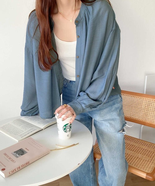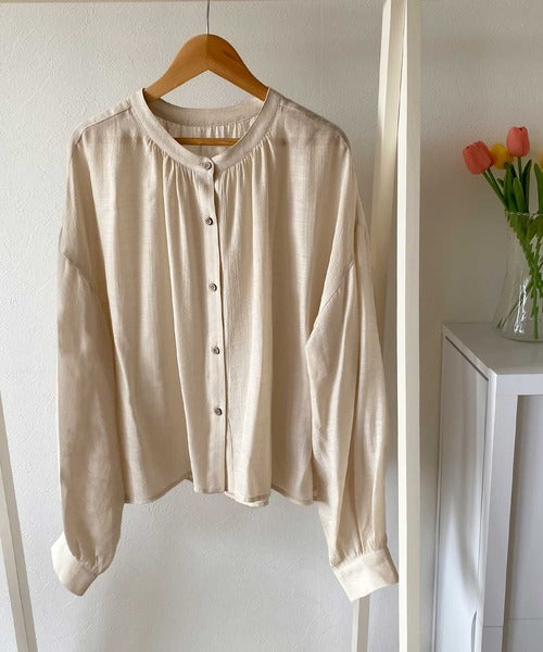 程よい透け感の大人っぽシアーバンドカラーブラウス。