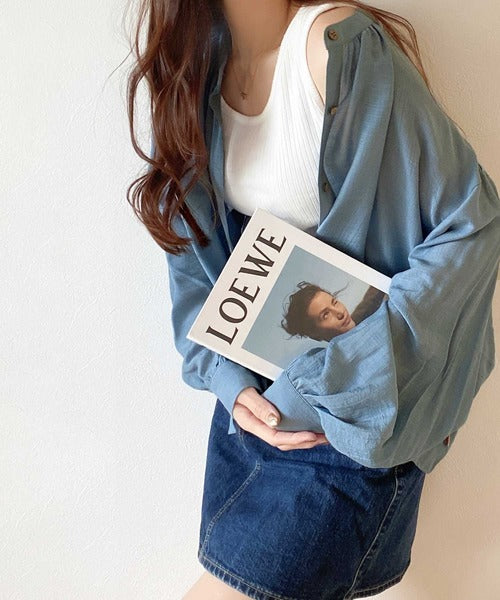 《JaVaジャバ コラボ》程よい大人の抜け感。2wayクロップド丈シアーバンドカラーシャツ jv1110012
