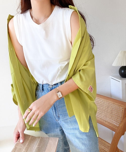ゆったりしたオーバーサイズでトレンドを押さえた楊柳シャツです。