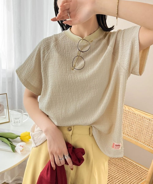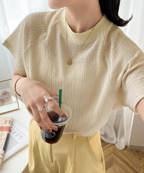 《JaVa ジャバコラボ》大人仕様。ぽこぽこ素材のラグランスリーブTee jv1110025