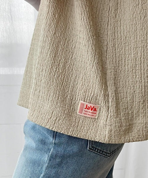 JaVaタグがアクセントになり、シンプルな着こなしでもお洒落映えする万能トップス。