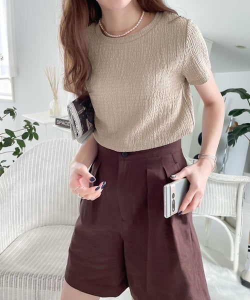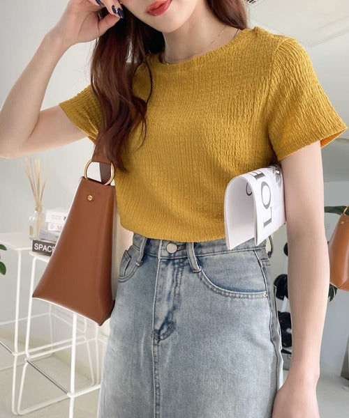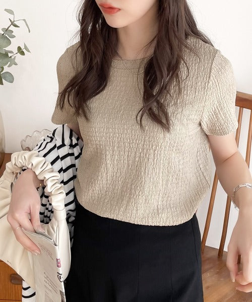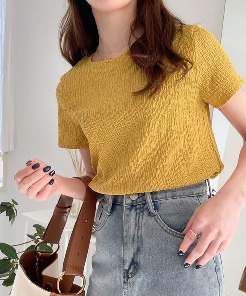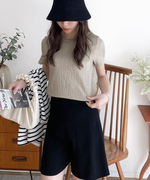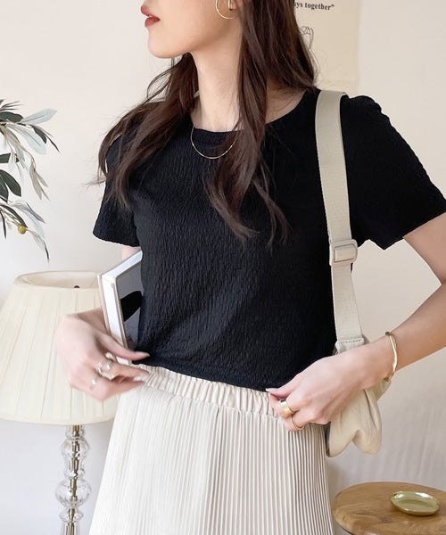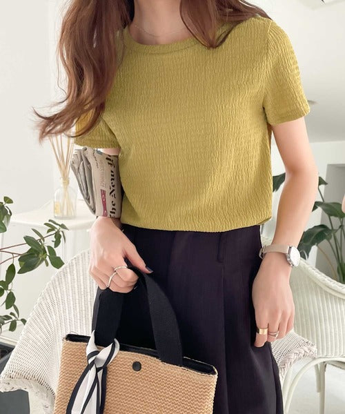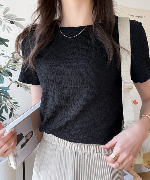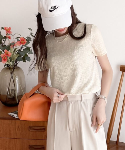 くしゅっとした立体感とコンパクトなシルエットが魅力のTシャツ。