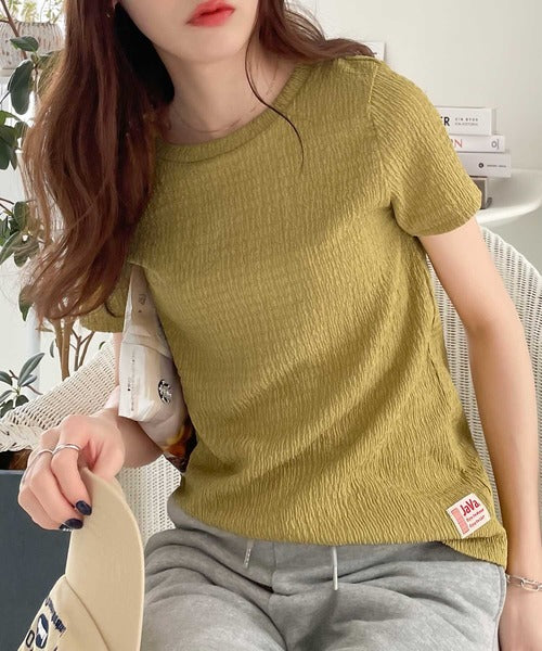 《JaVa ジャバコラボ》大人のシンプル。ぽこぽこ素材ベーシックTee jv1110026