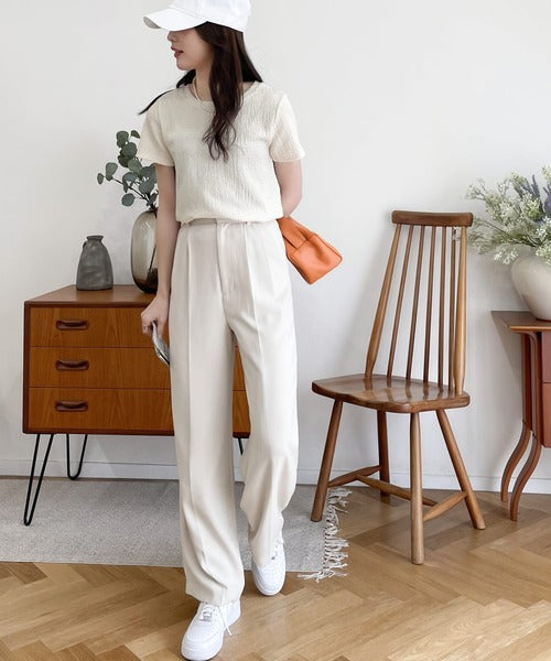スラックスパンツできれいめ大人フェミニンなコーデもおすすめ◎