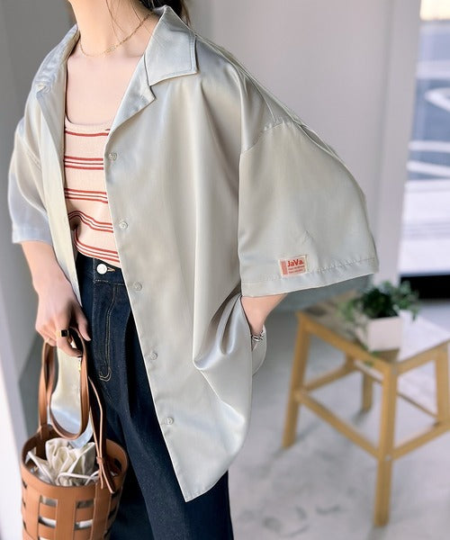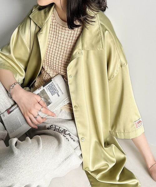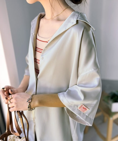 《JaVaジャバ コラボ》上品メンズライク。とろみオーバーサイズサテンシャツ jv1110028