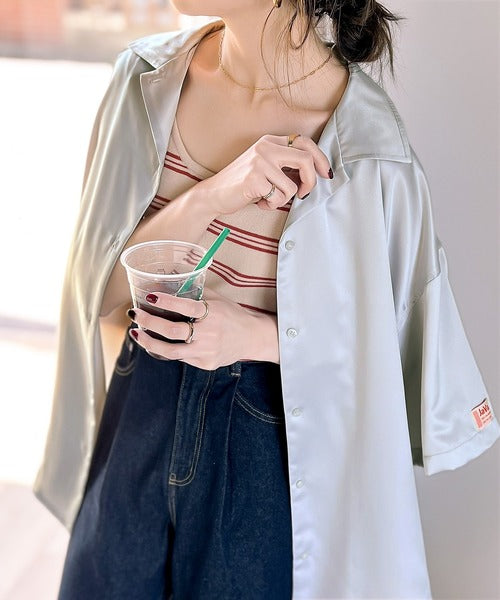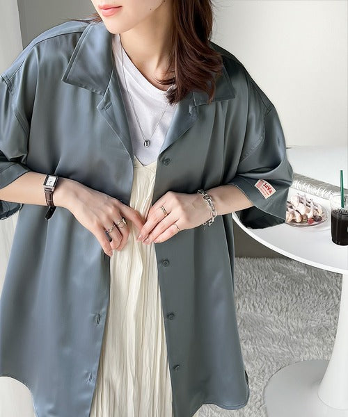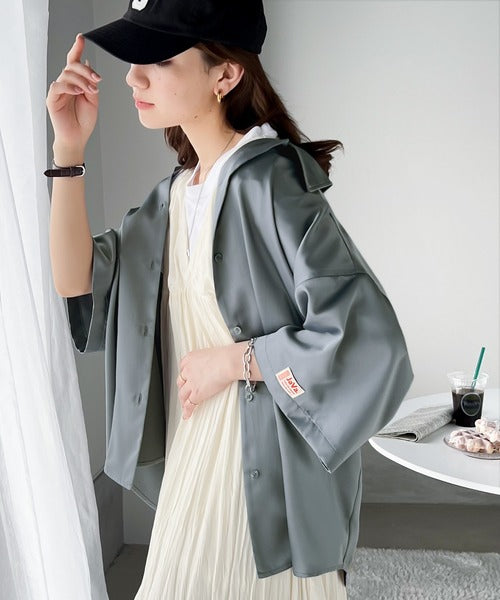 とろみのあるサテンと、メンズライクなビックシルエットがお洒落見え!