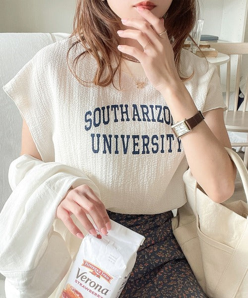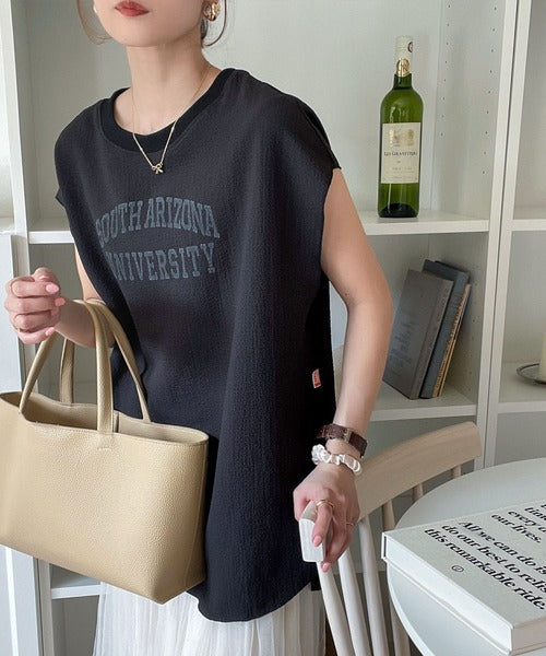 ヴィンテージロゴと上品見え素材が相性抜群な1枚。