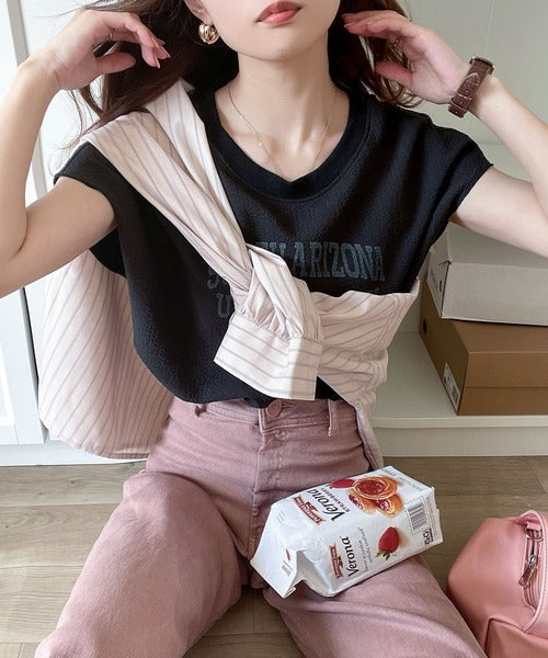 《JaVa ジャバコラボ》上品ヴィンテージ。フレンチスリーブプリントカットソー jv1110033