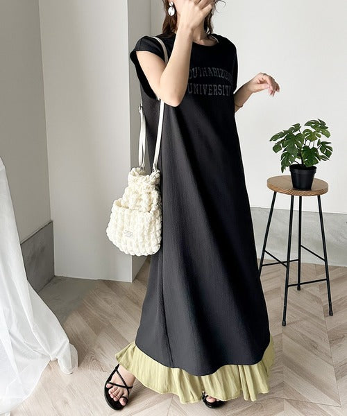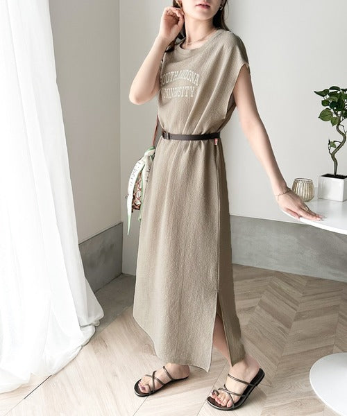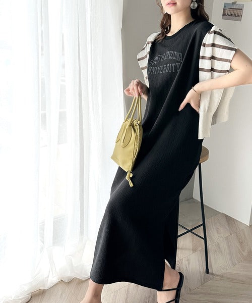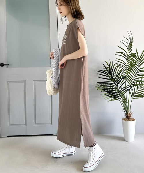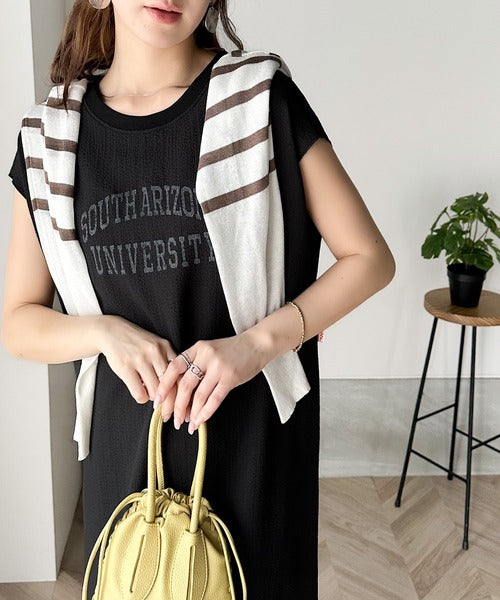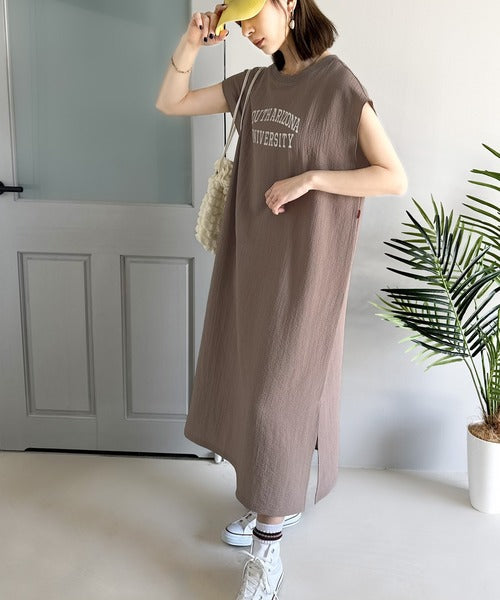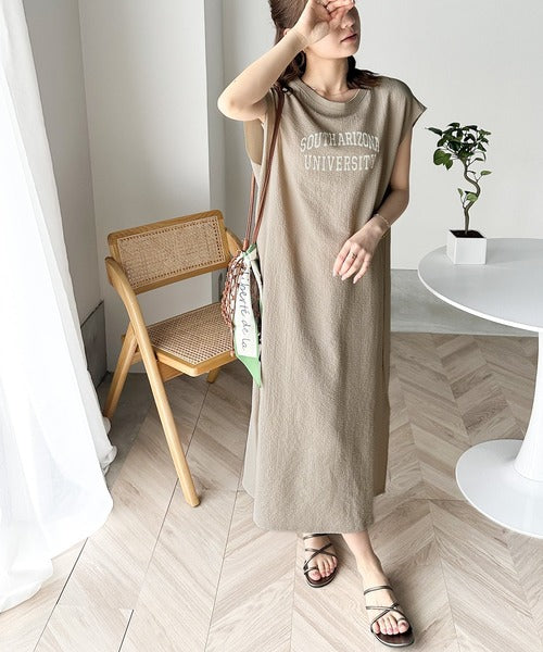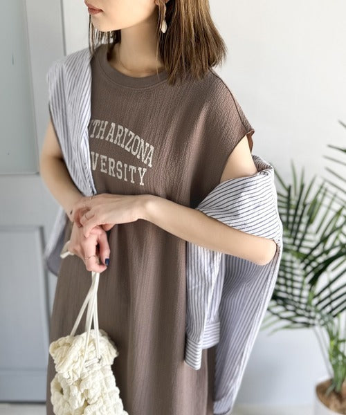 ヴィンテージ感のあるフロントロゴプリントワンピース。