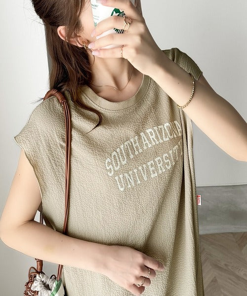 古着っぽいヴィンテージ風のロゴがコーディネートのポイントに。