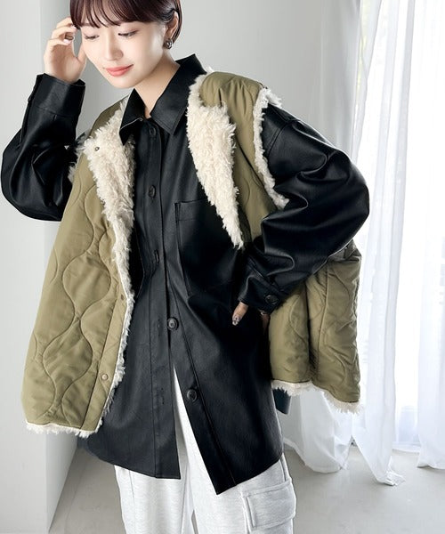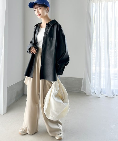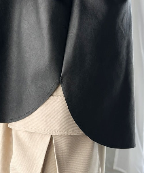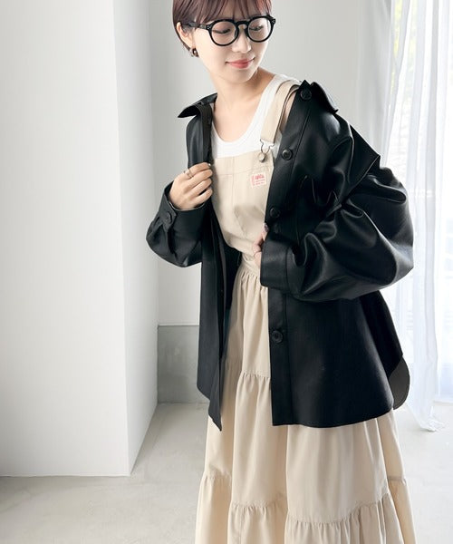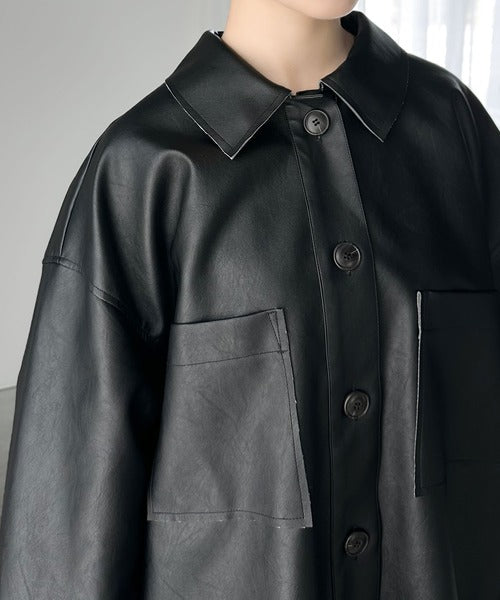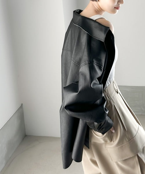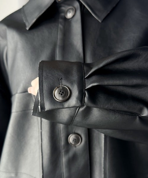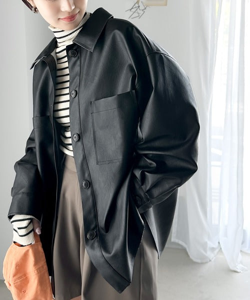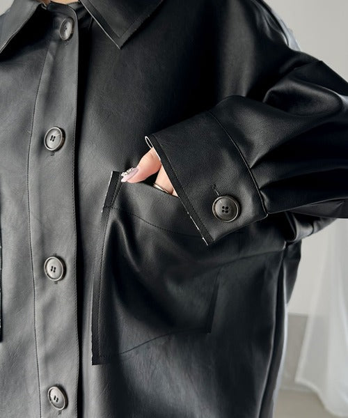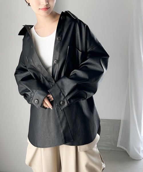 フェイクレザーで仕立てた大人モードなシャツジャケット。
