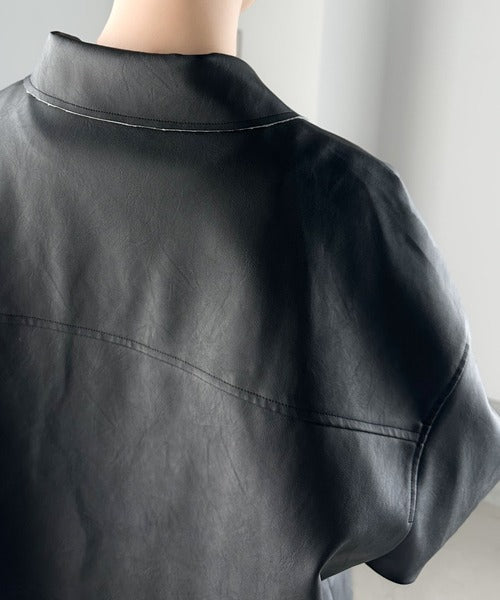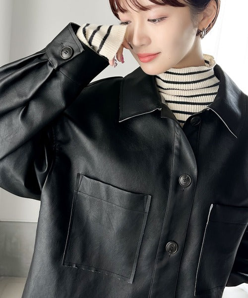 シャツ感覚で羽織れるフェイクレザージャケット。