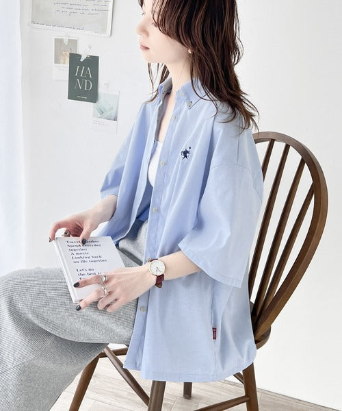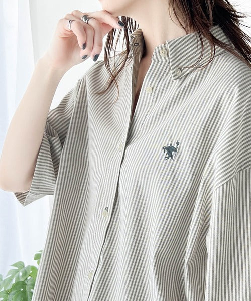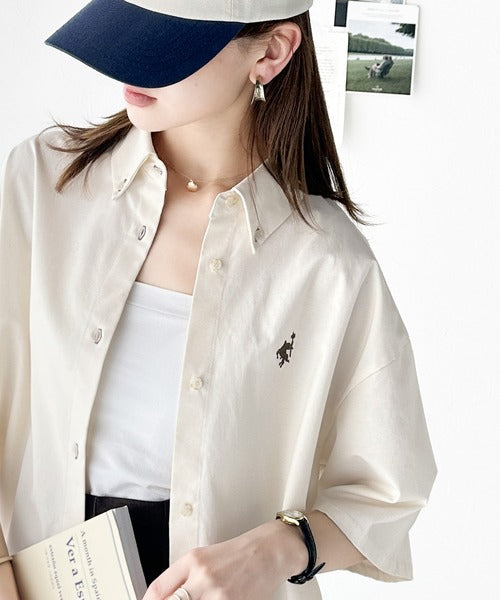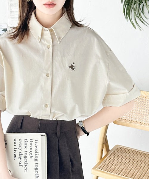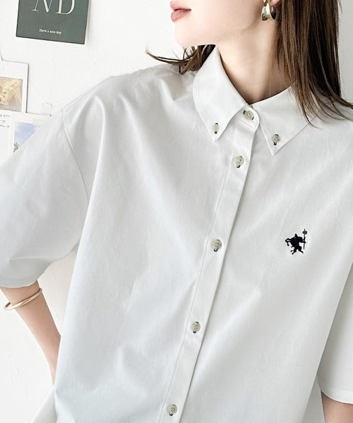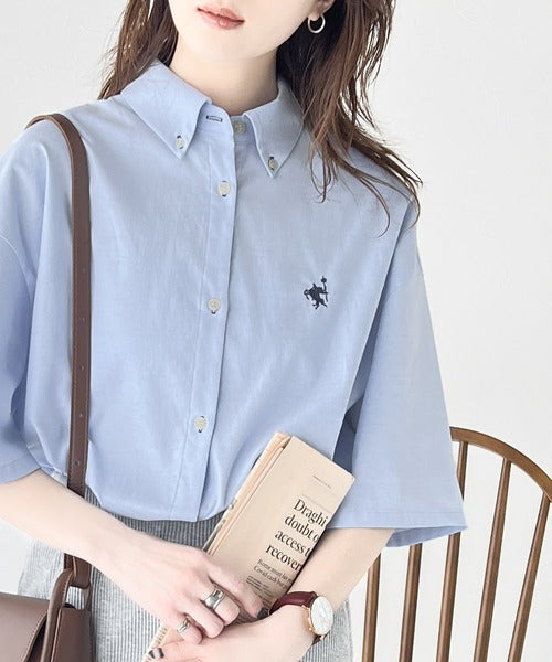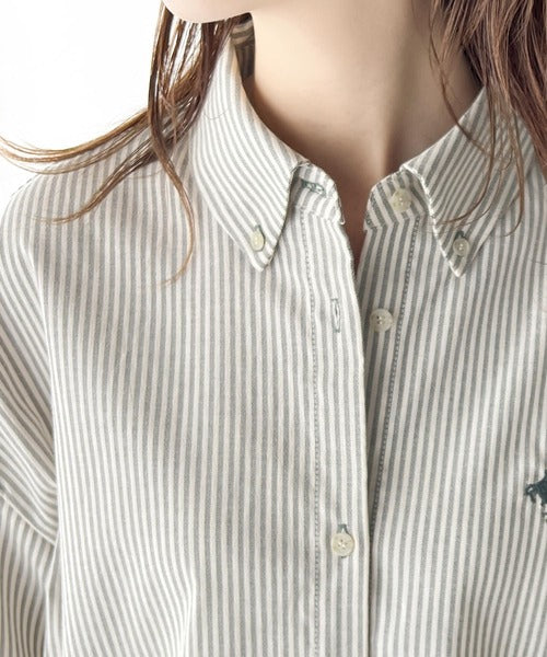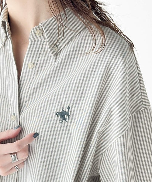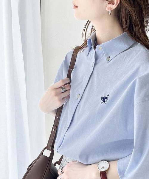 胸元にワンポイントロゴ刺繍を施したオックスフォードシャツ