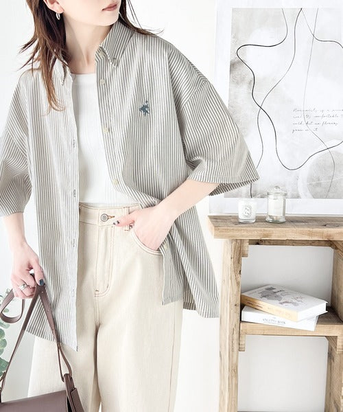 配色刺繡と配色の釦ホールがさり気ないアクセントになったBDシャツは、「大人カジュアル」コーデに最適なアイテムです。
