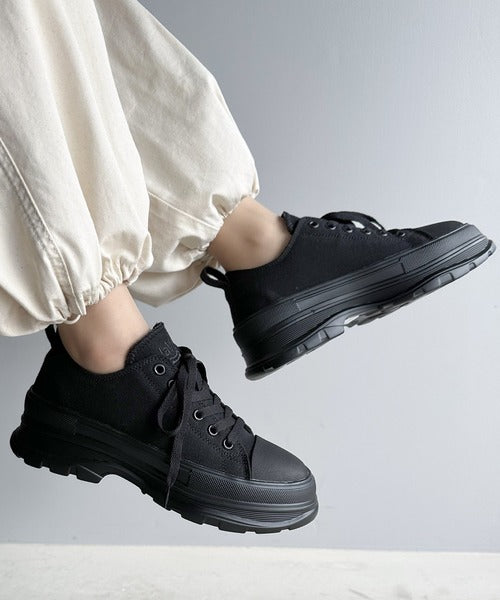 ボリューム感のある厚底ソールでスタイルアップが叶う。