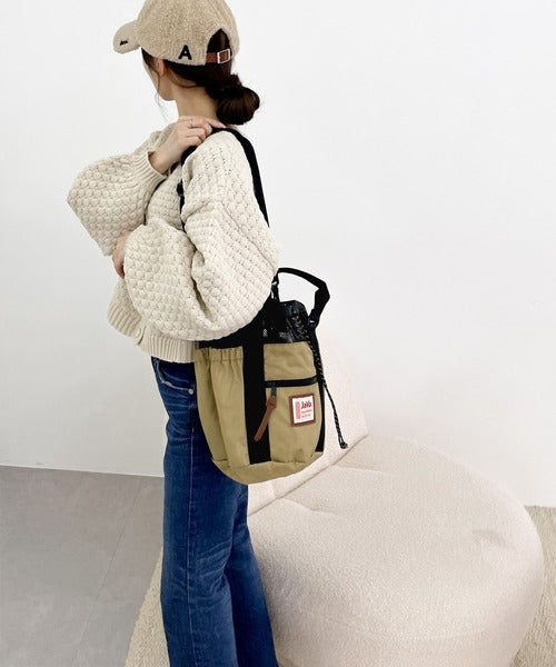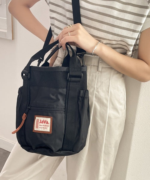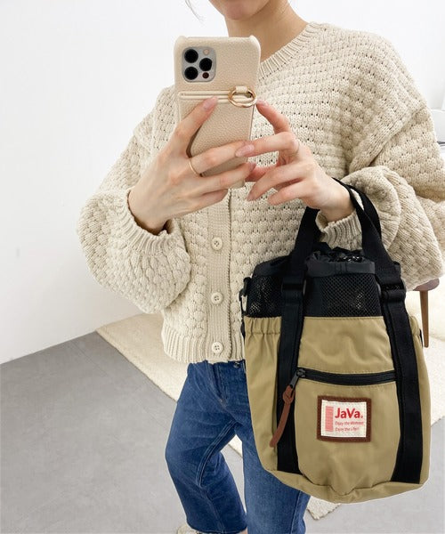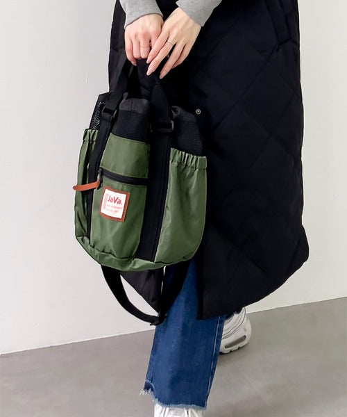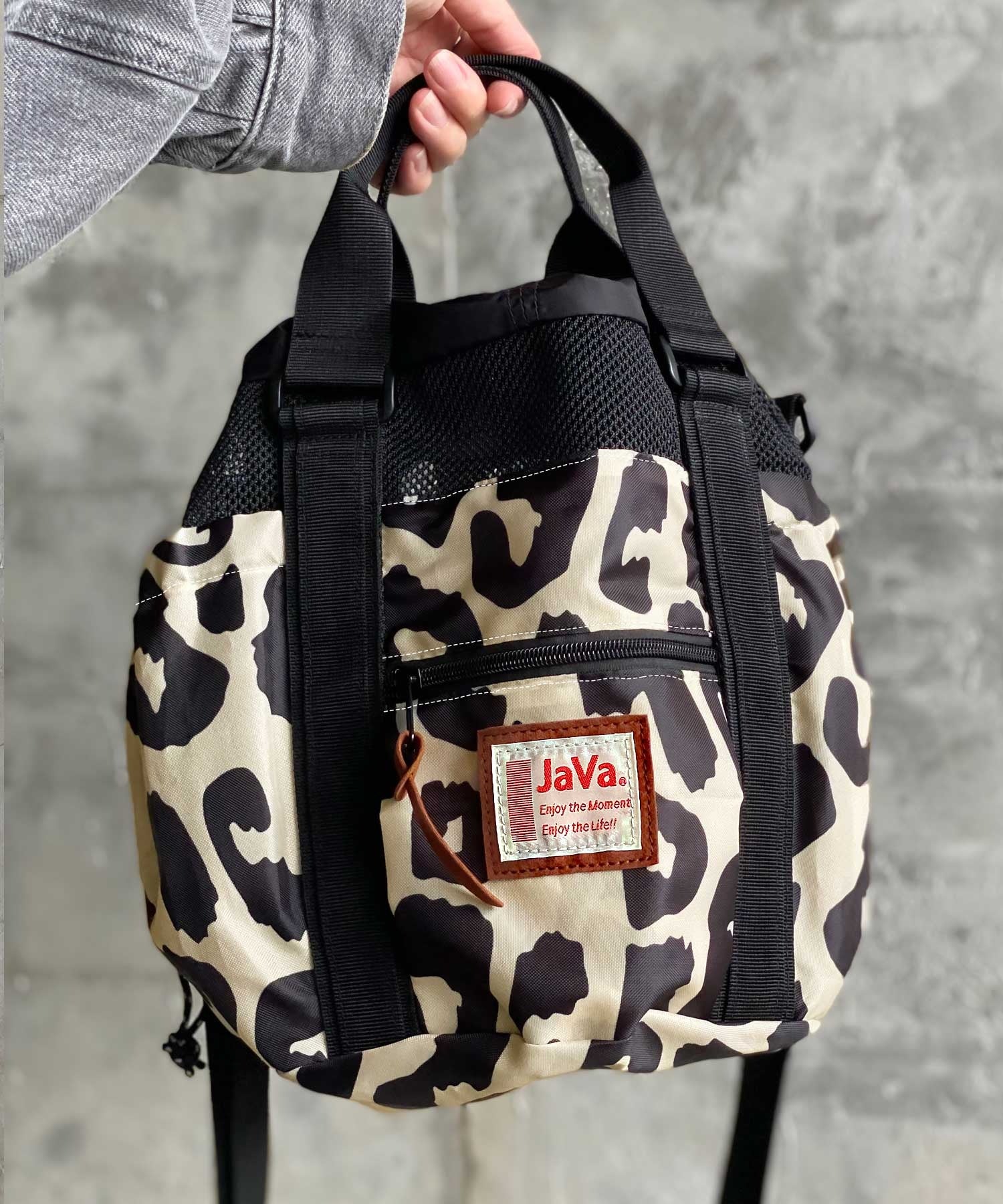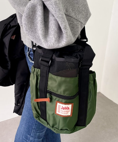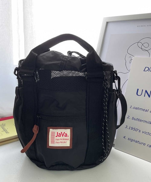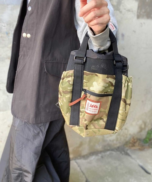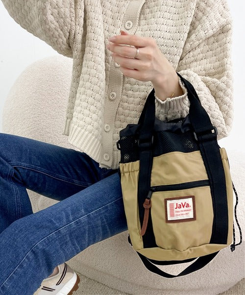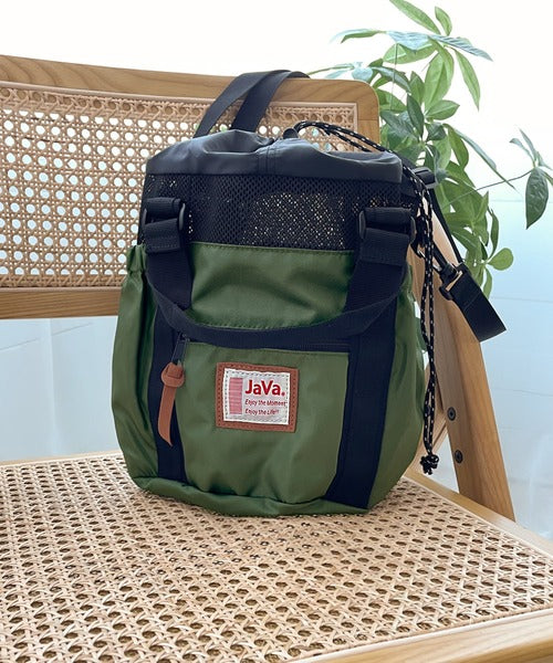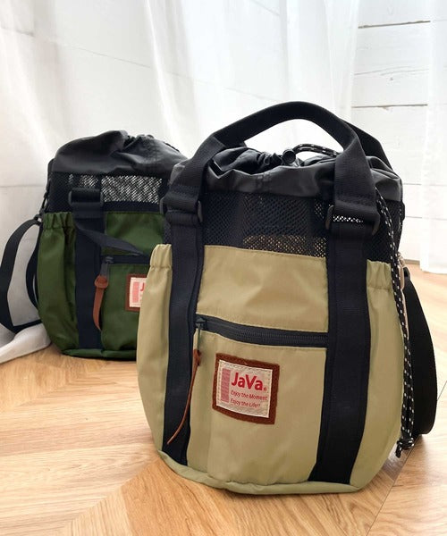 《JaVaジャバ コラボ》ころんと可愛い。2wayアウトドア巾着メッシュバッグ jv1159001