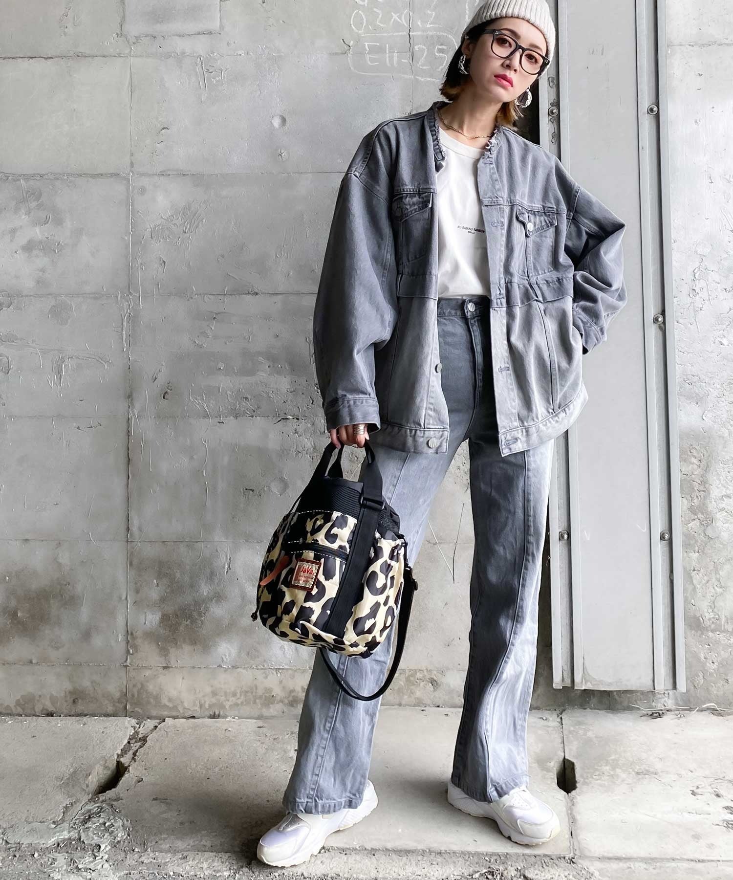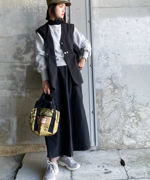 ロングスカートに合わせた大人カジュアルなスタイリングもおすすめ。
