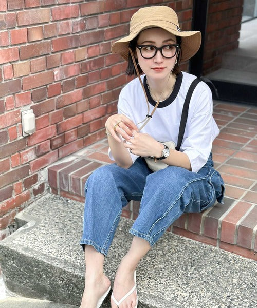 ブリムは長めで深くかぶれる形なので、夏の紫外線対策もばっちり。