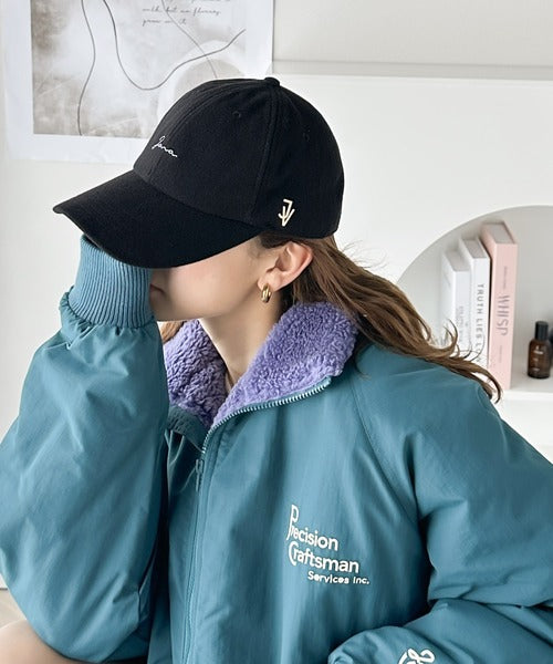 幅広いスタイルと合わせやすいウールライクキャップ。