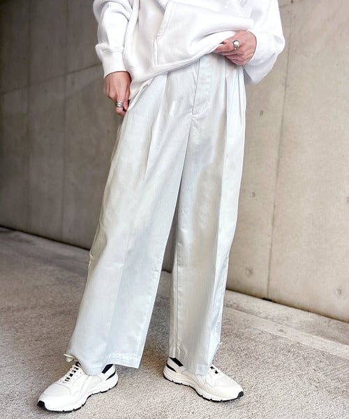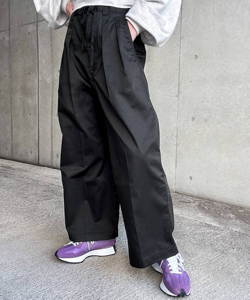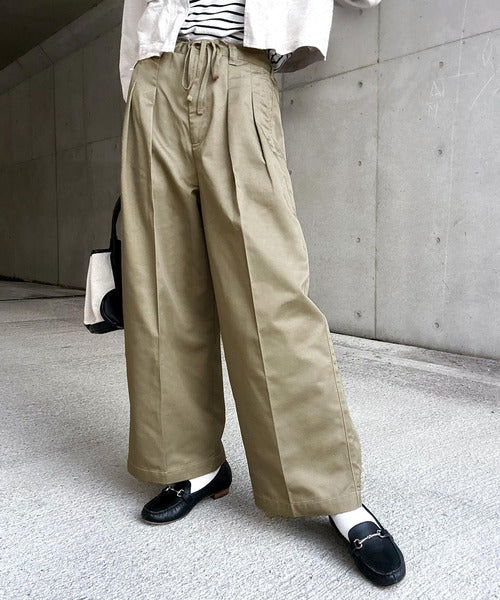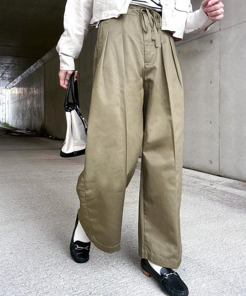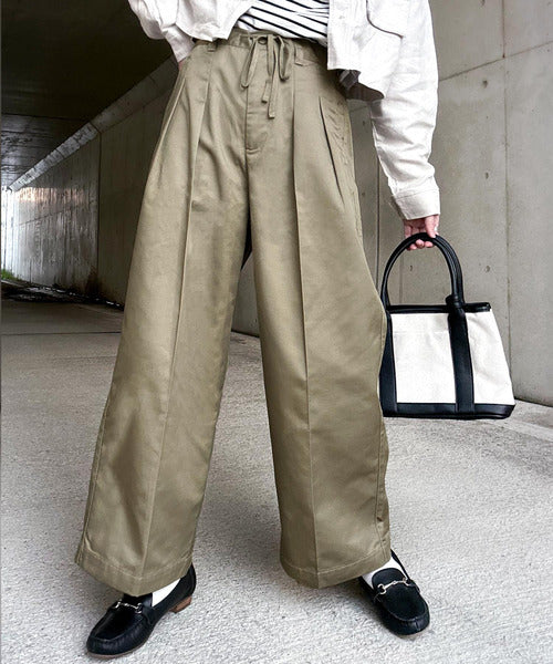 たっぷりタックとセンタープレスで美脚効果抜群のゆるっとワイドパンツ。
