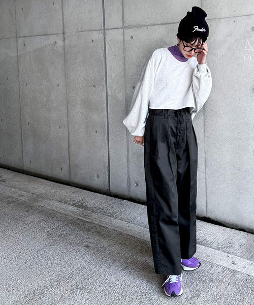 ワイドシルエットで足のラインを拾わず、穿くだけでスタイルアップが叶います。