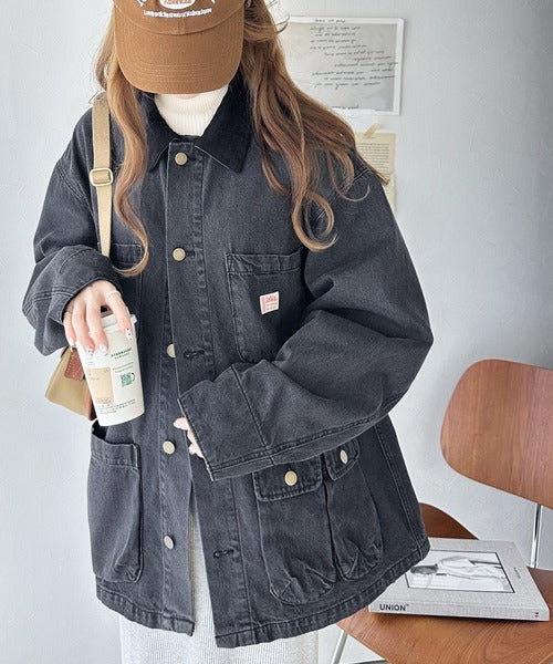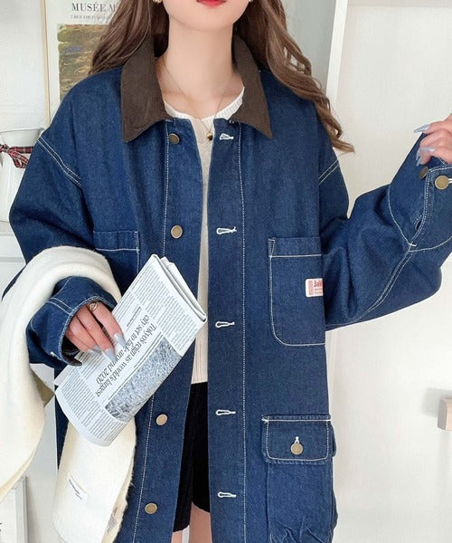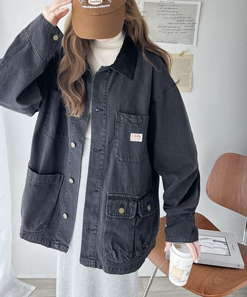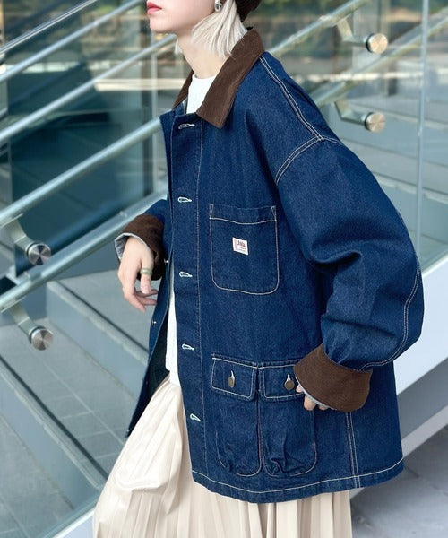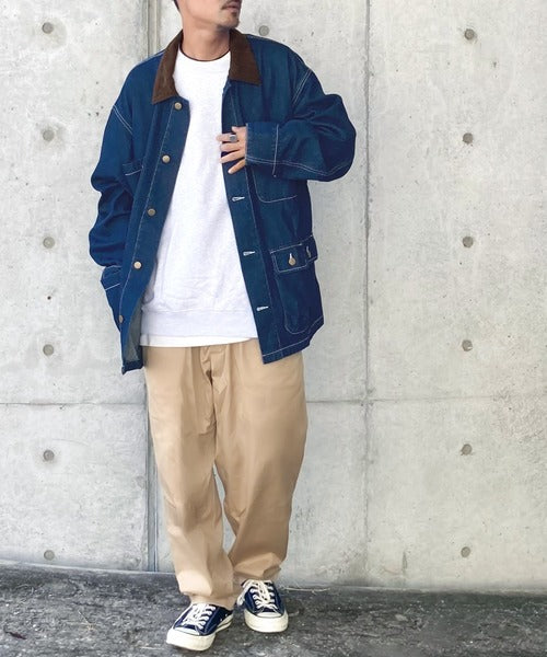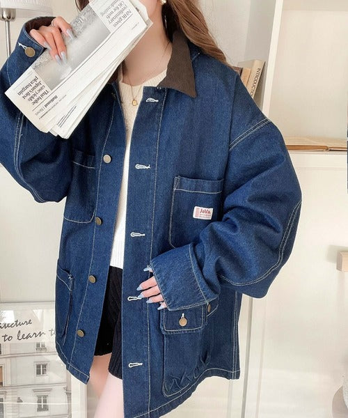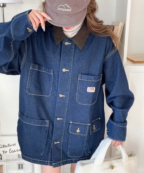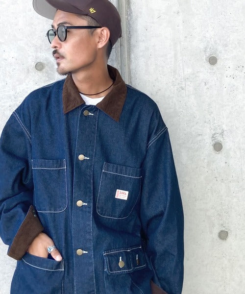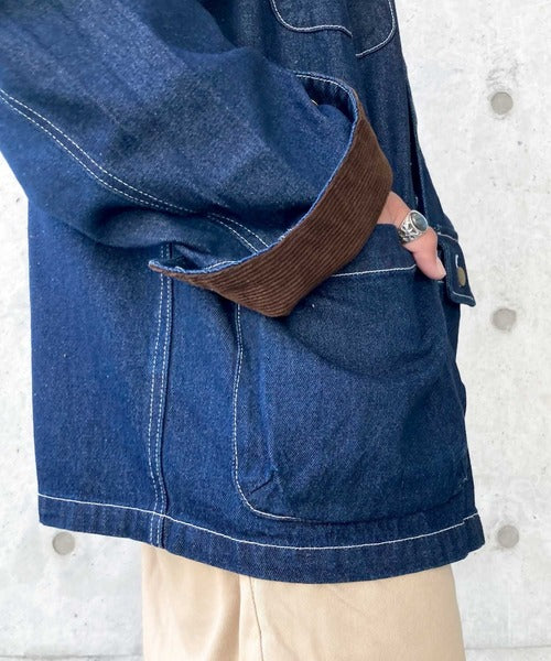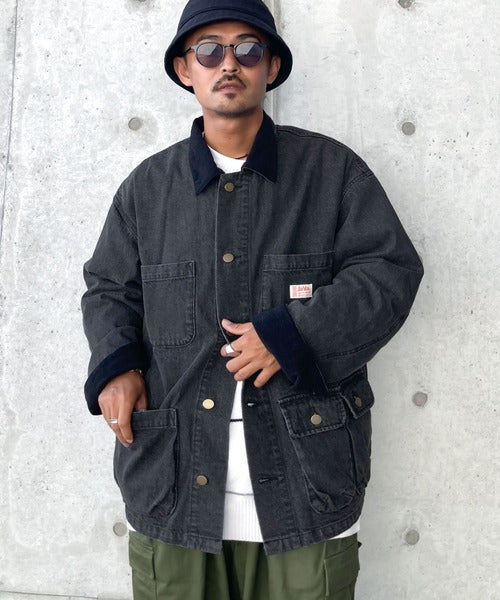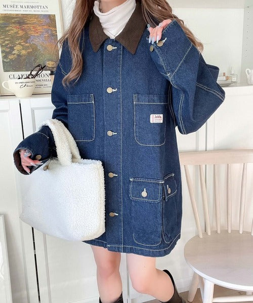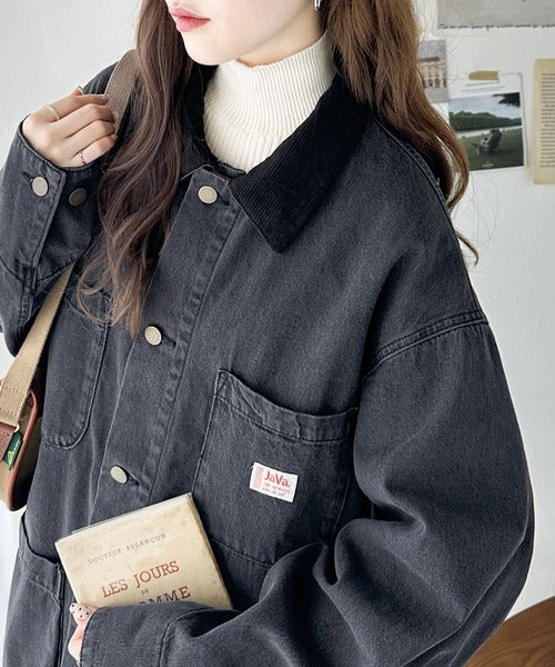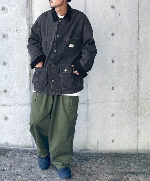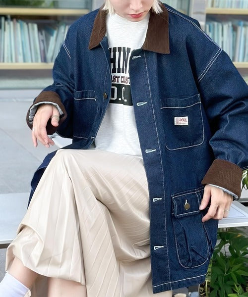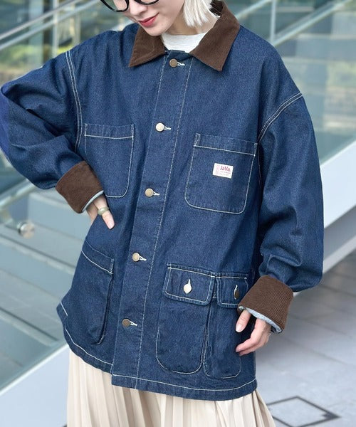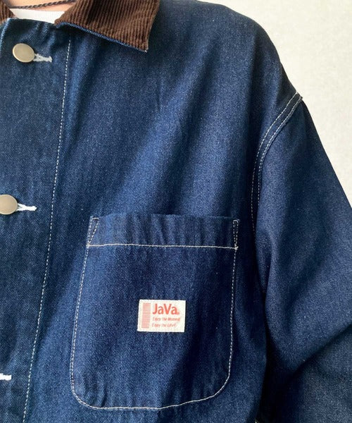 《Javaジャバコラボ》大人のワークテイスト。コーデュロイ衿ミリタリーデニムジャケット jv1209009