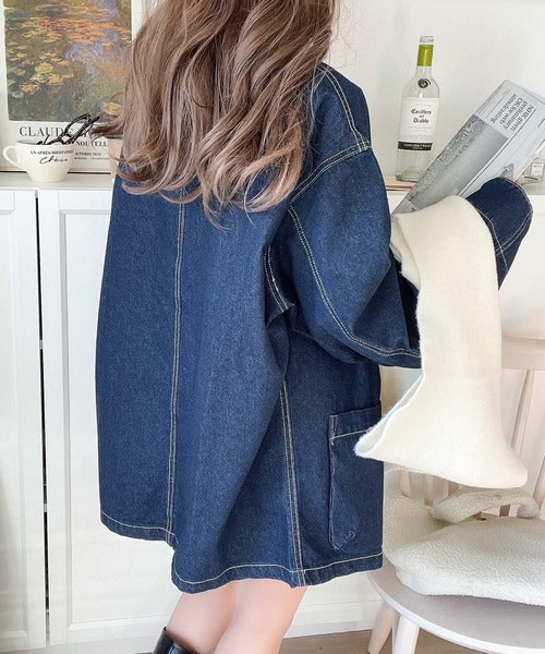 デニムのカジュアル感がありながらも、衿とボタンの配色できちんと感をプラス。