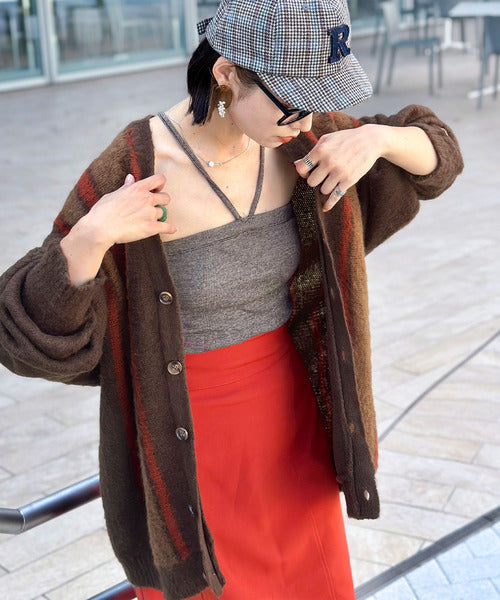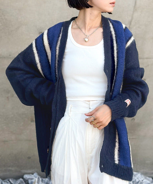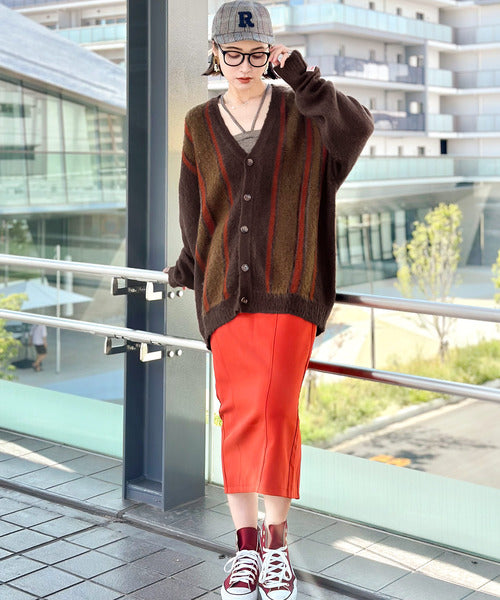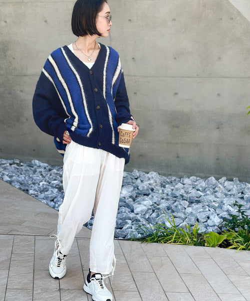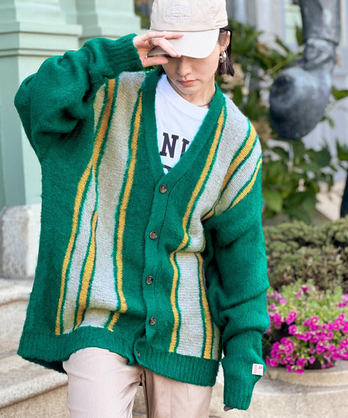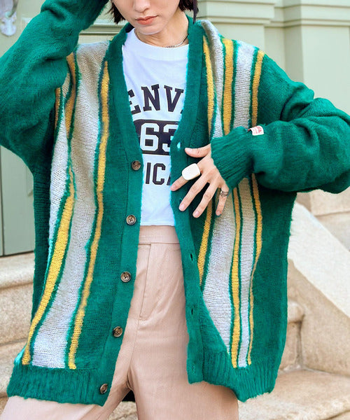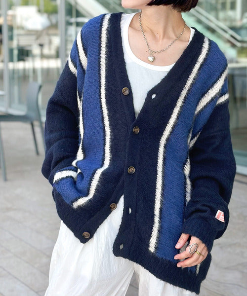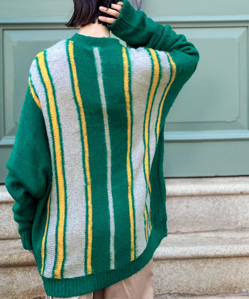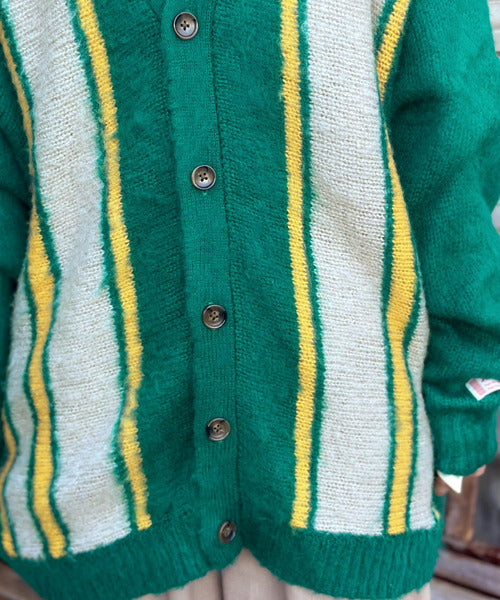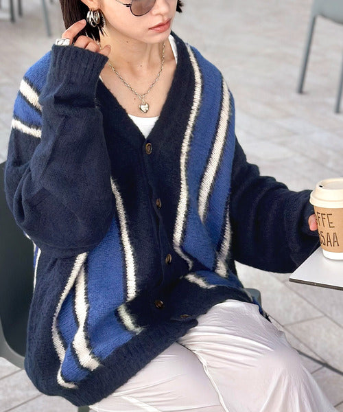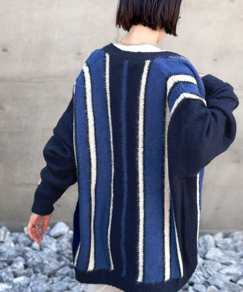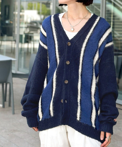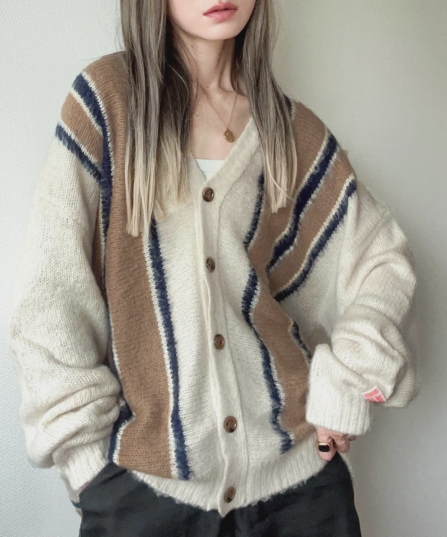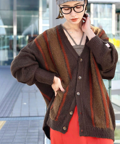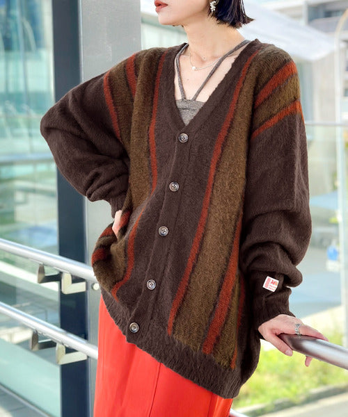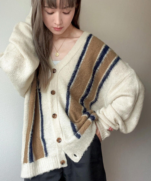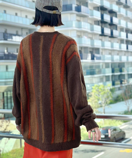 《Javaジャバコラボ》大人のマルチカラー配色。ストライプ柄モヘアライクカーディガン jv1219004