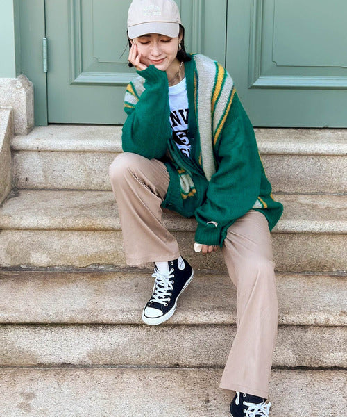 こだわりの色使いが存在感バツグンな、大人のストライプカーディガン。