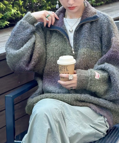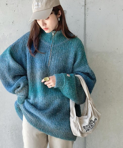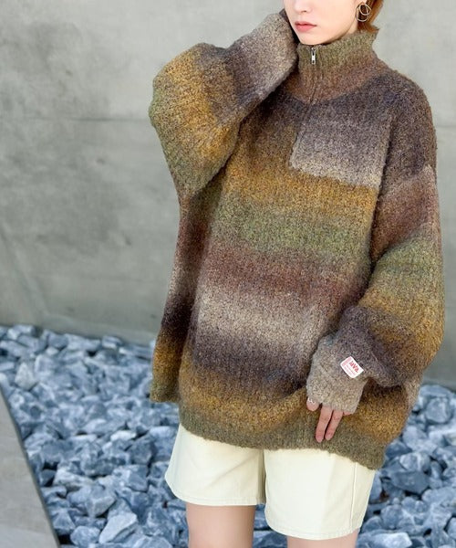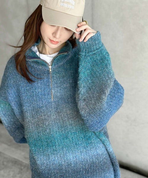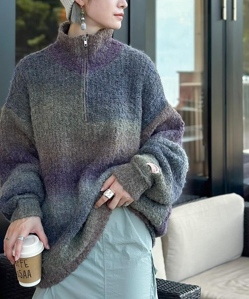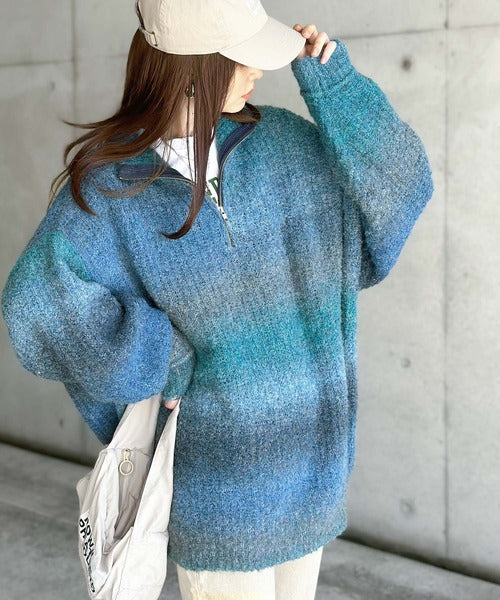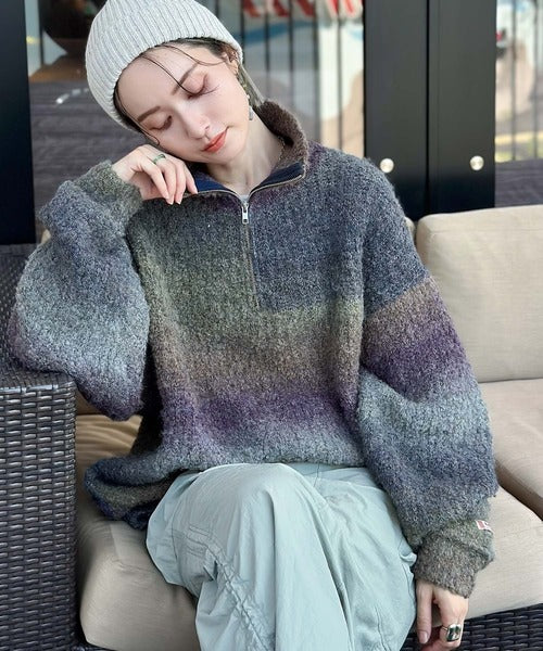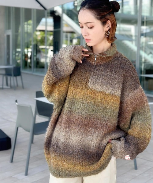 トレンドのハーフジップニットが鮮やかなグラデーションになって登場!