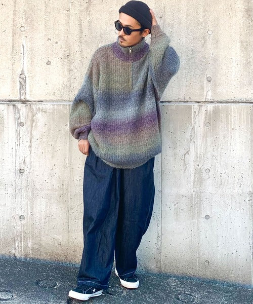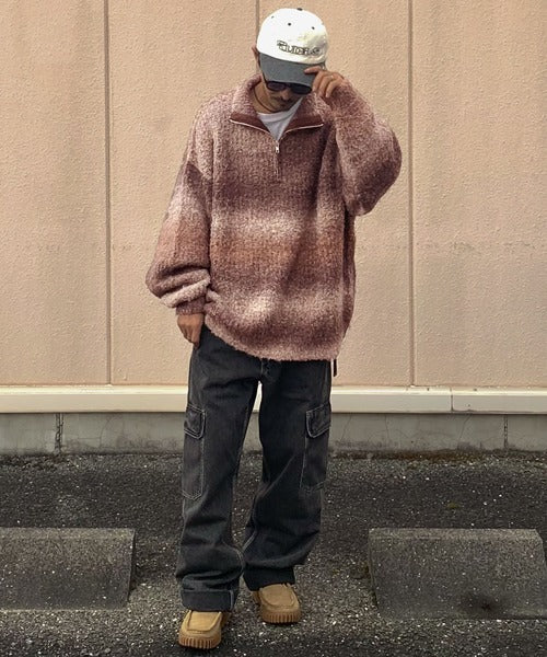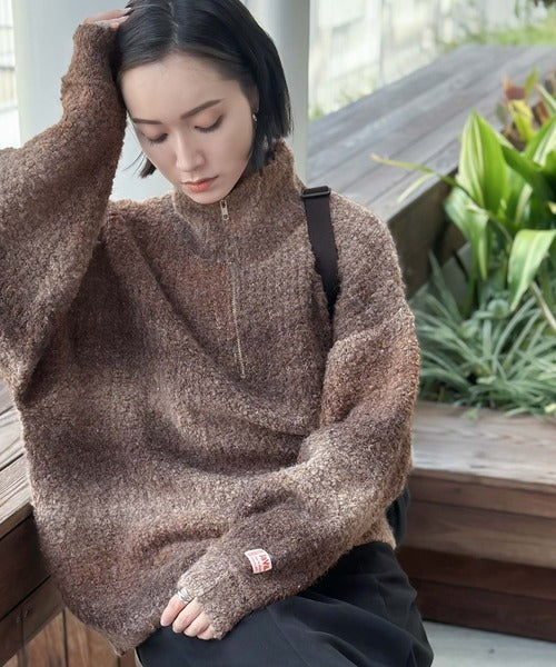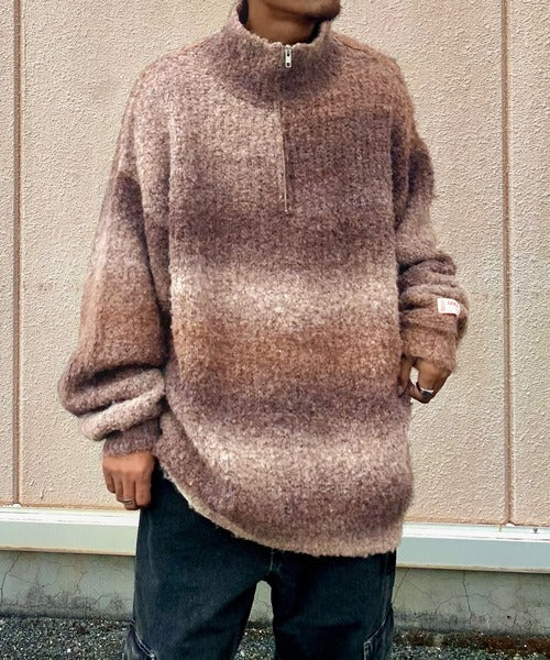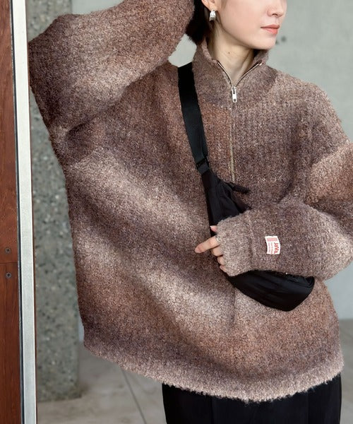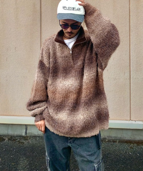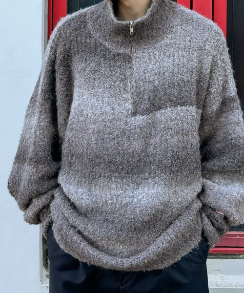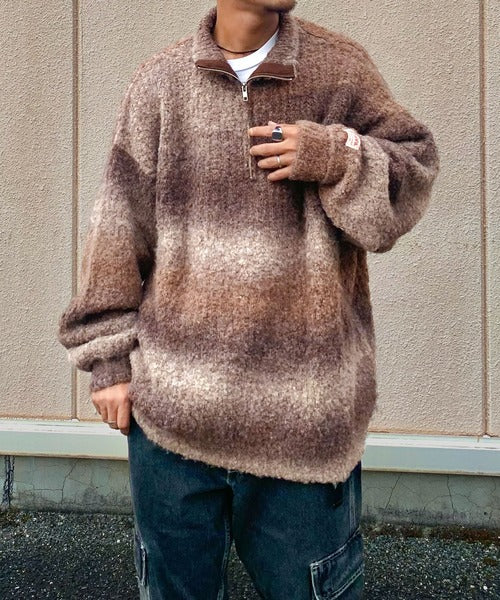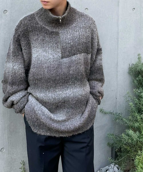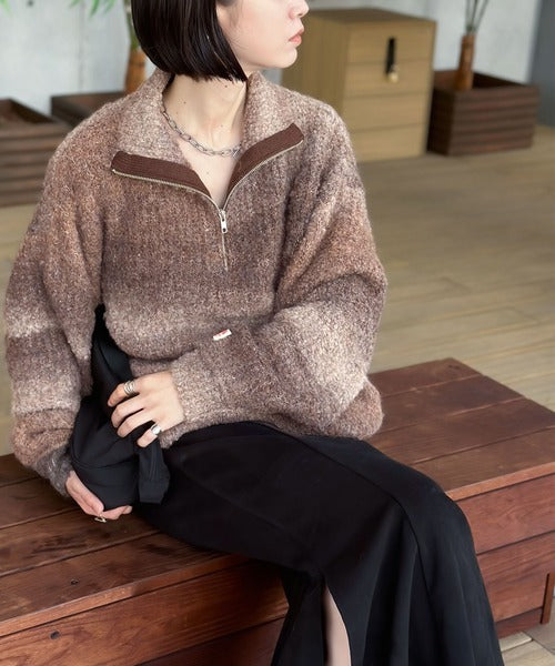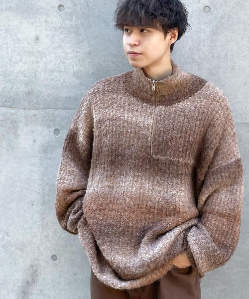 《JaVaジャバ コラボ》一点投入で着映えが叶う。グラデーションハーフジップニット jv1219005