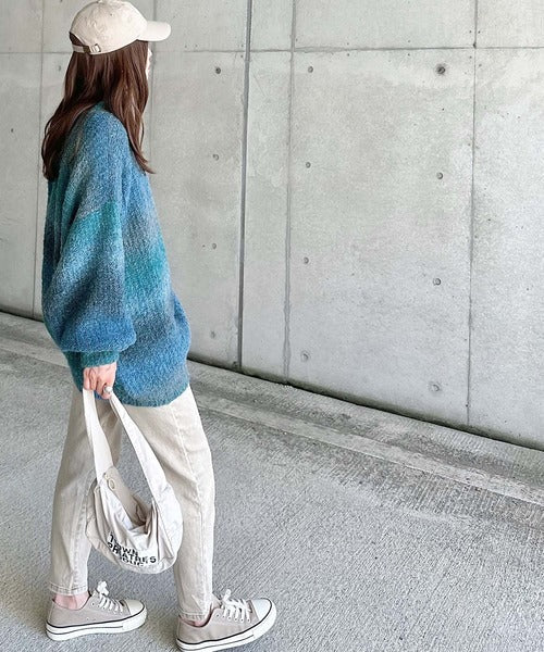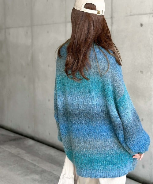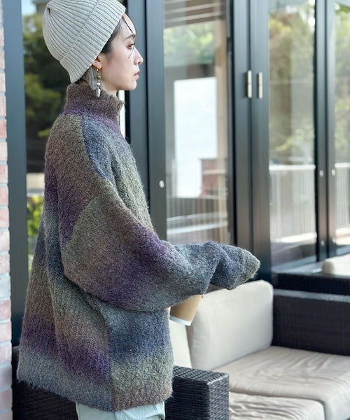 印象的なカラーグラデ―ションで、トレンド感あるお洒落な着こなしが叶うブークレニット。
