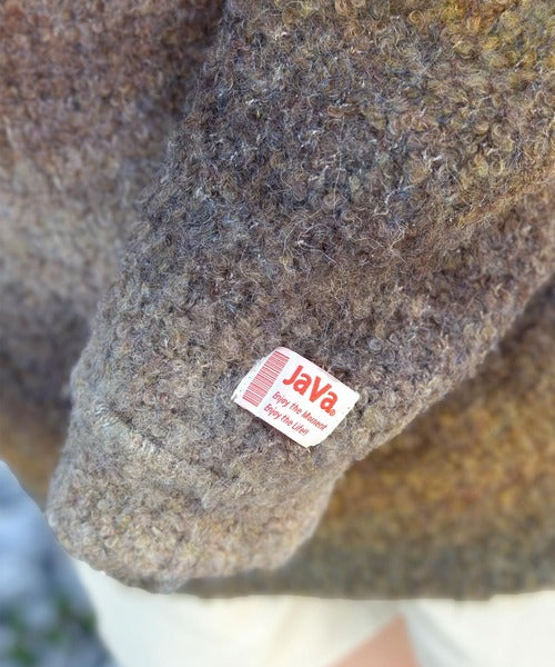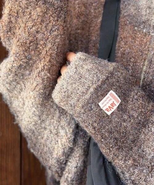 ふんわり暖かく、伸縮性の有るブークレニット糸を使用。