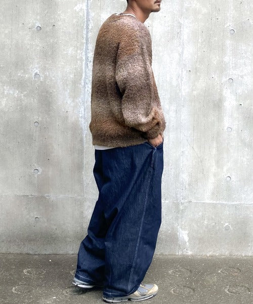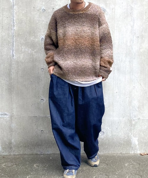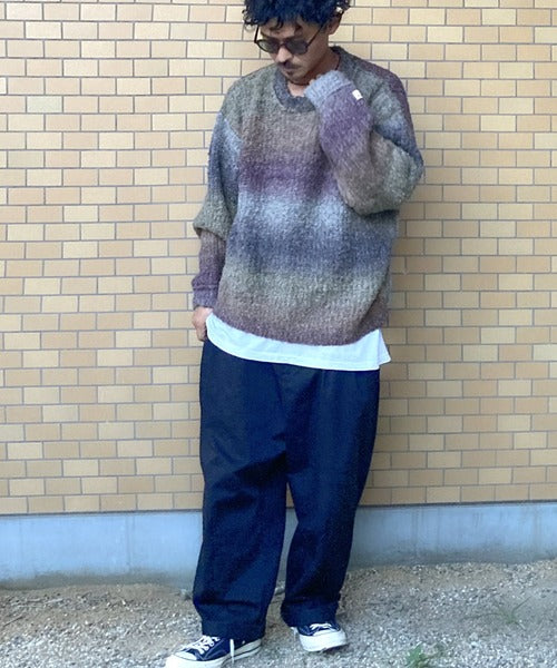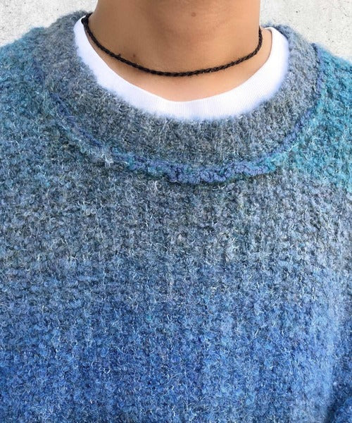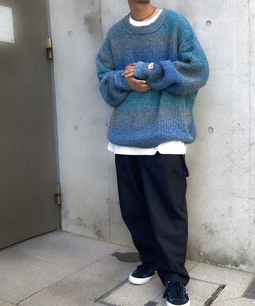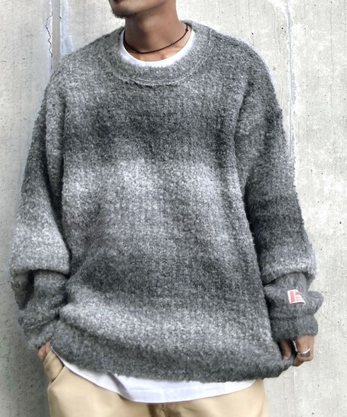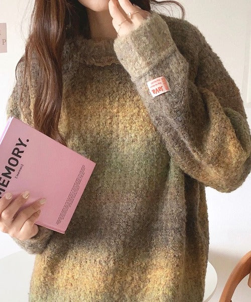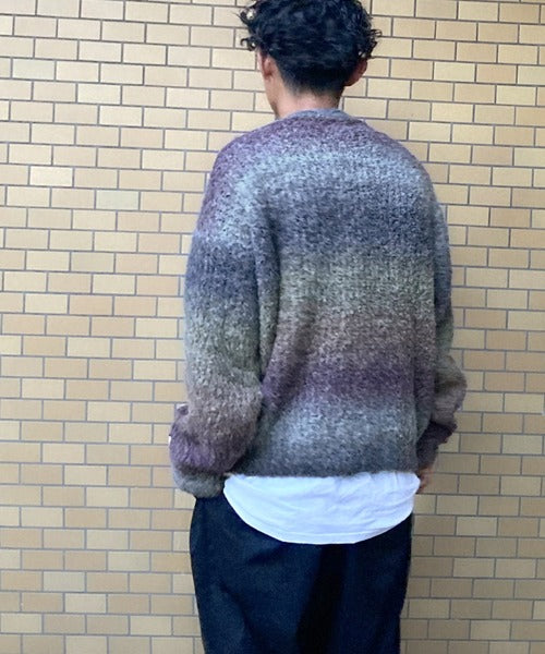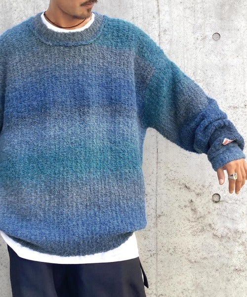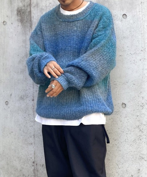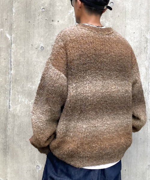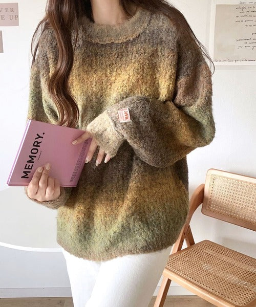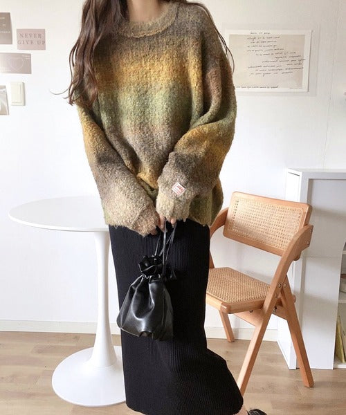 印象的なカラーグラデ―ションで、トレンド感あるお洒落な着こなしが叶うクルーネックニット。