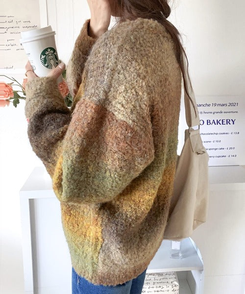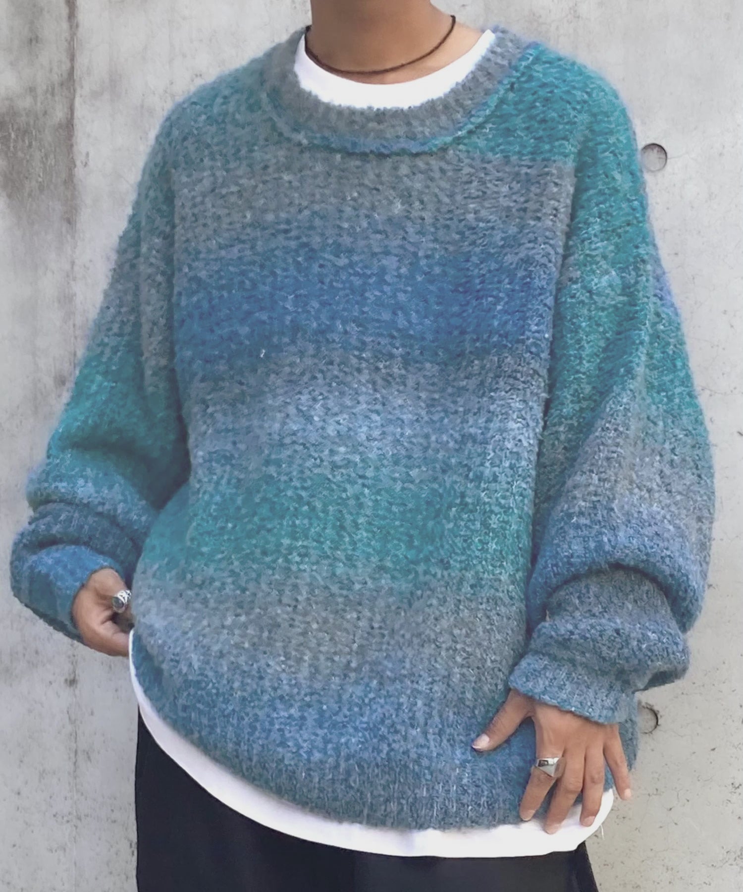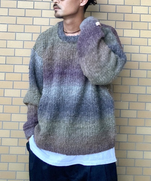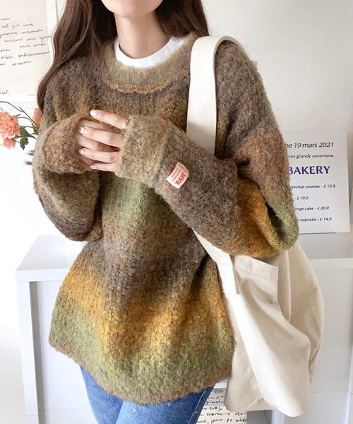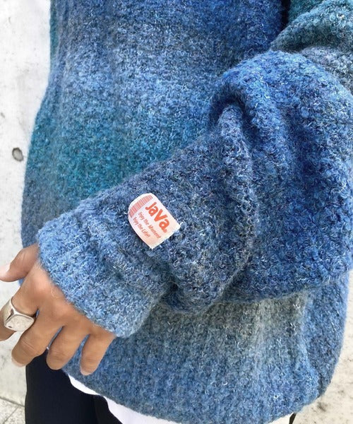 《Javaジャバコラボ》大人配色グラデーションクルーネックニット jv1219006